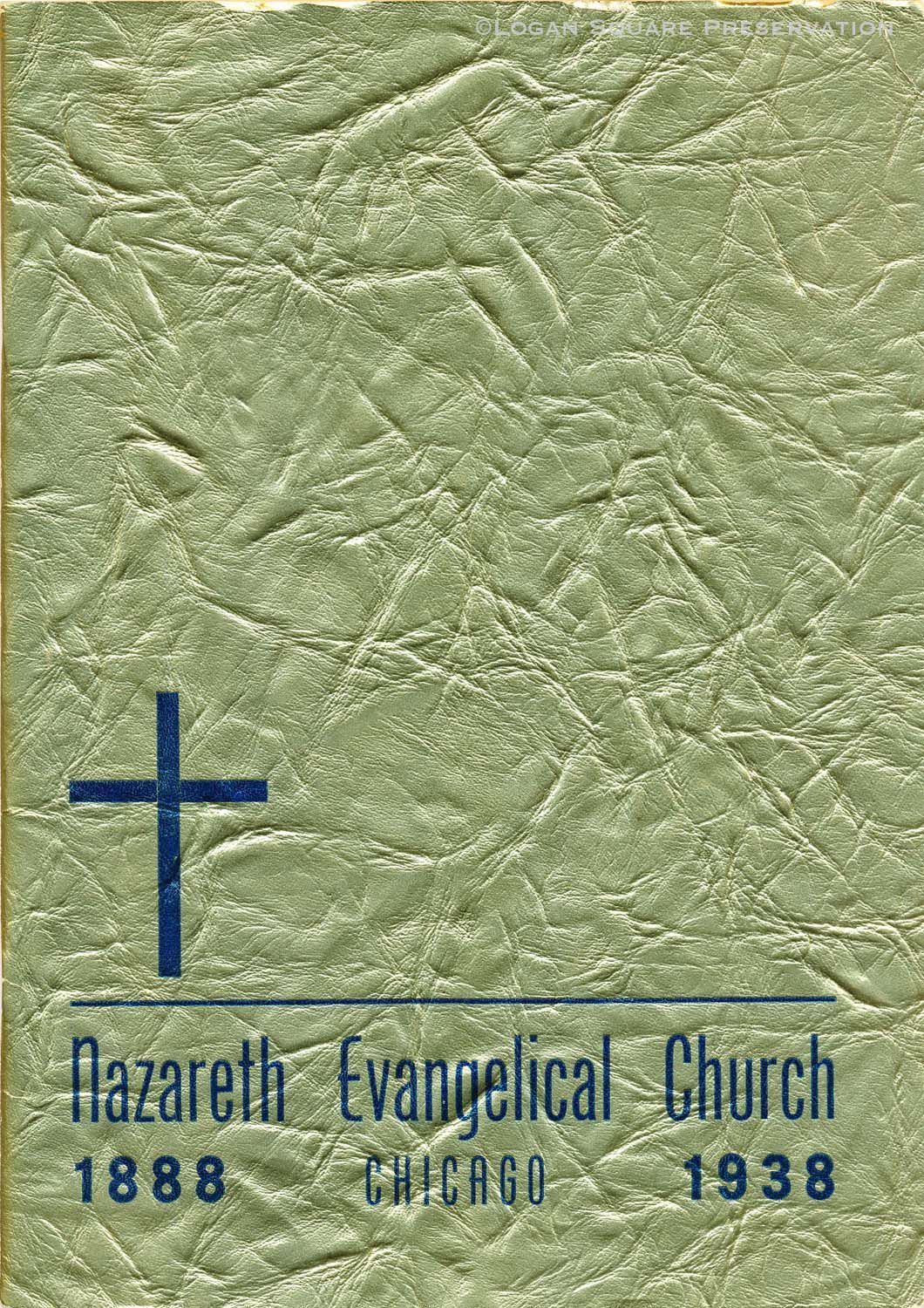 36-pg saddle-stitched souvenir booklet published for 50th anniversary of Nazareth Evangelical Church with church history, photos and descriptions of church social groups, 1938Book Details