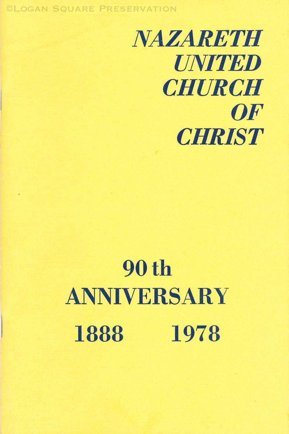 24-pg saddle-stitched souvenir booklet published for 90th anniversary of Nazareth United Church of Christ with church history and photos, 1978Collection