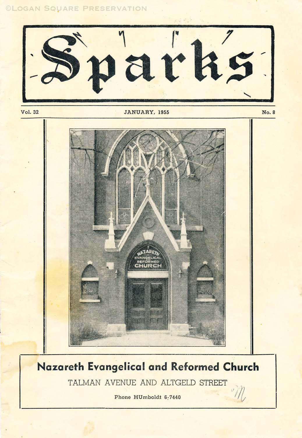 16-pg monthly newsletter with photo of entrance to Nazareth Evangelical and Reformed Church on cover. Contains church news, local business ads, January 1955Collection