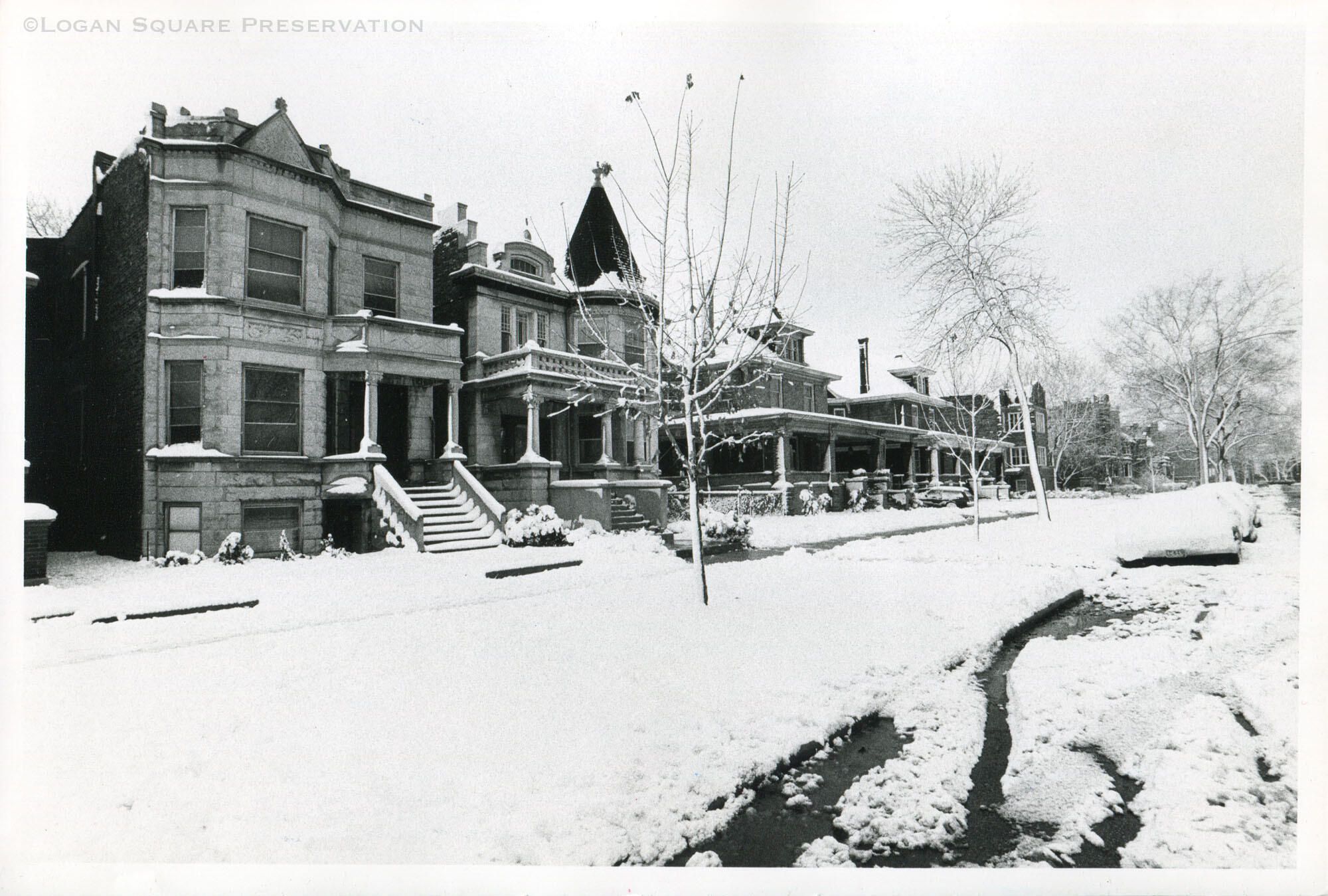 Street scene and old large houses east of Kedzie on Palmer SquareDescription