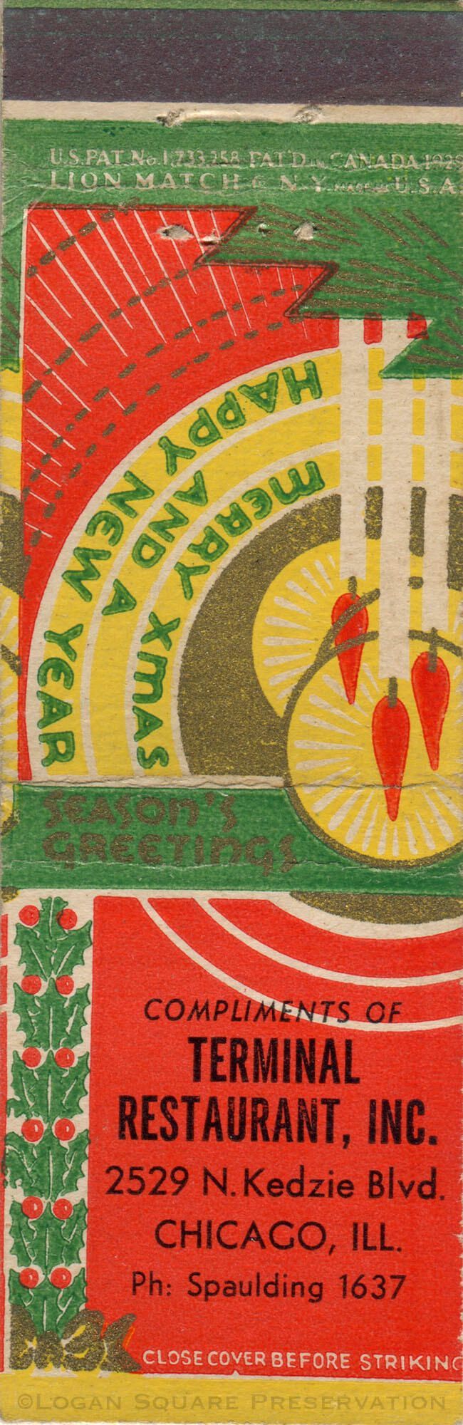 Terminal Restaurant holiday matchbookEntry/Object ID