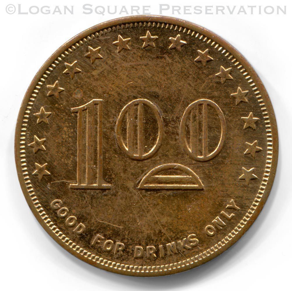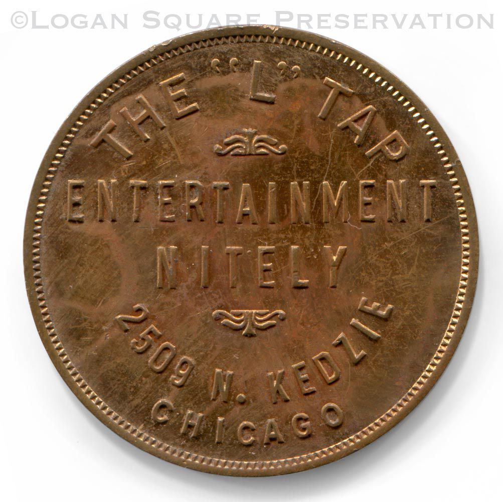1.5" copper-plated tavern token good for $1.00 in drinks at L Tap, circa 1940-1950sRelationships