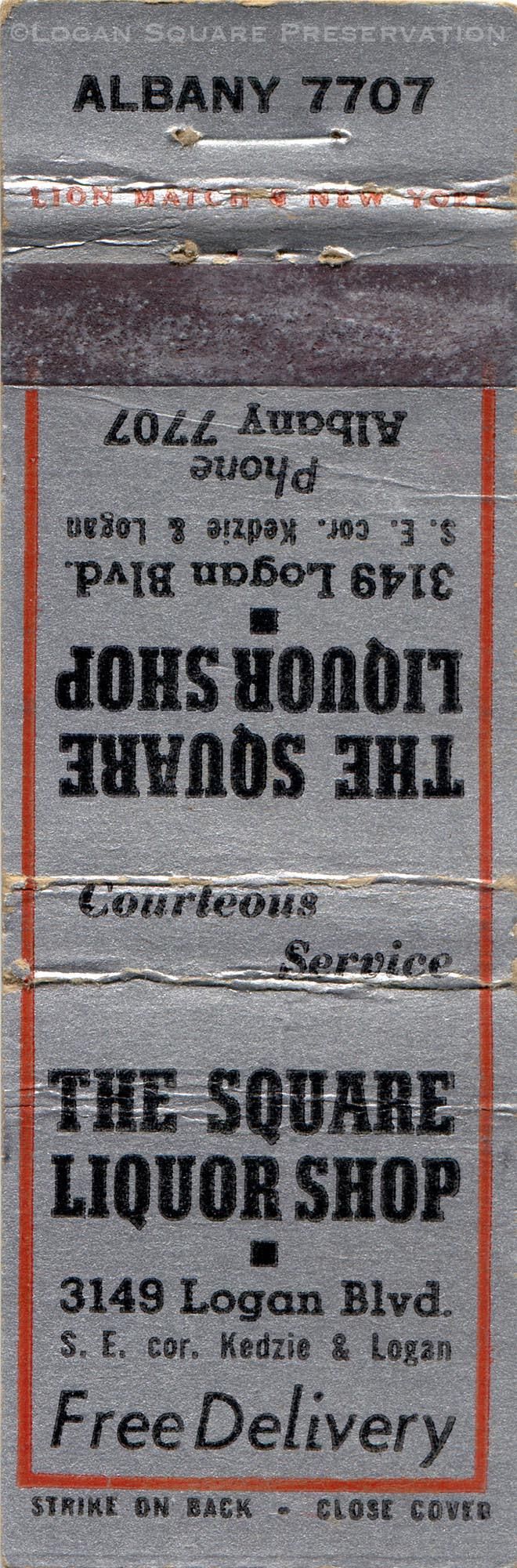 1.5" matchbook cover printed in black, red and silver ink for The Square Liquor Shop, circa 1950sPublication Details