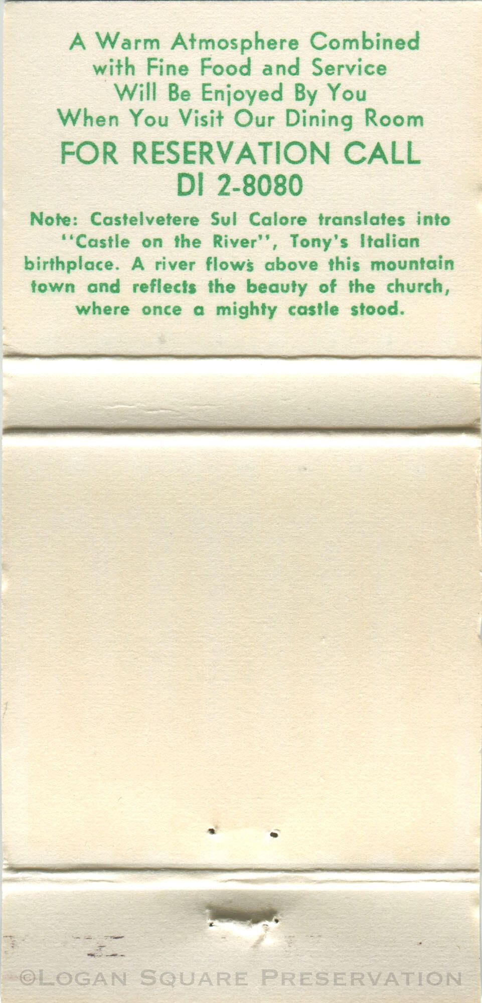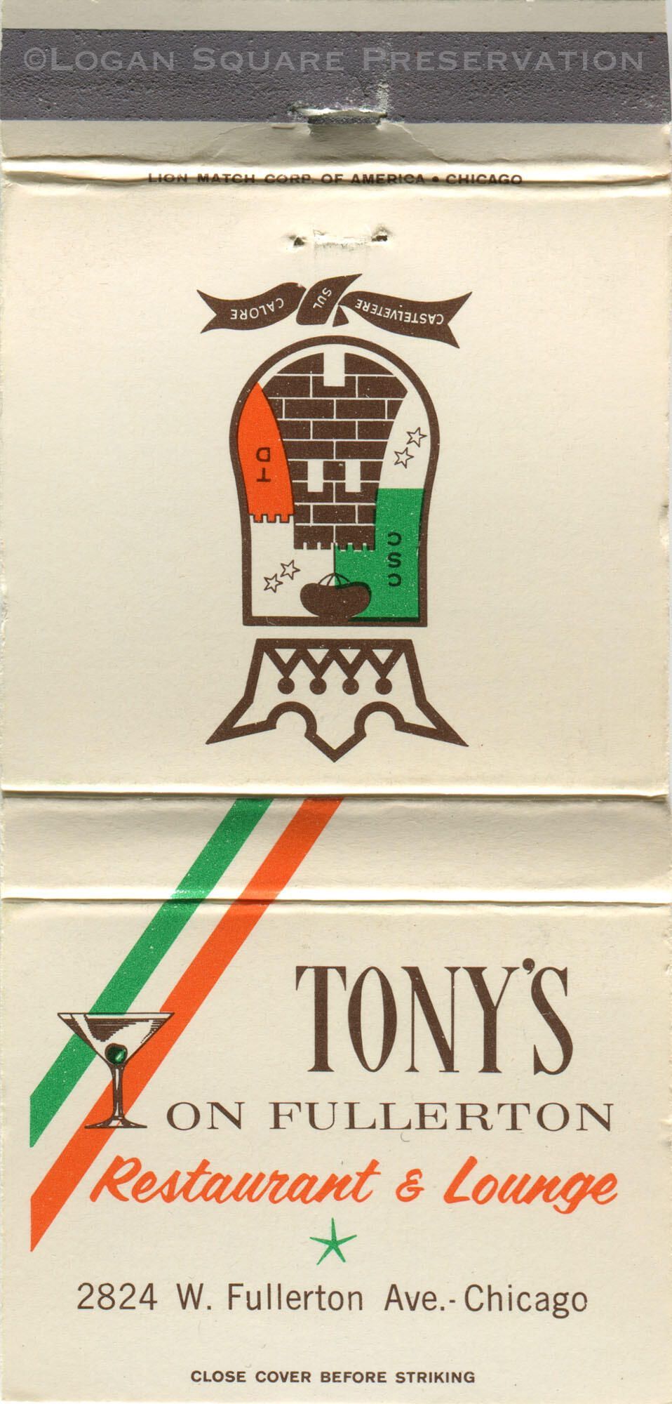 Tony's on Fullerton matchbookEntry/Object ID