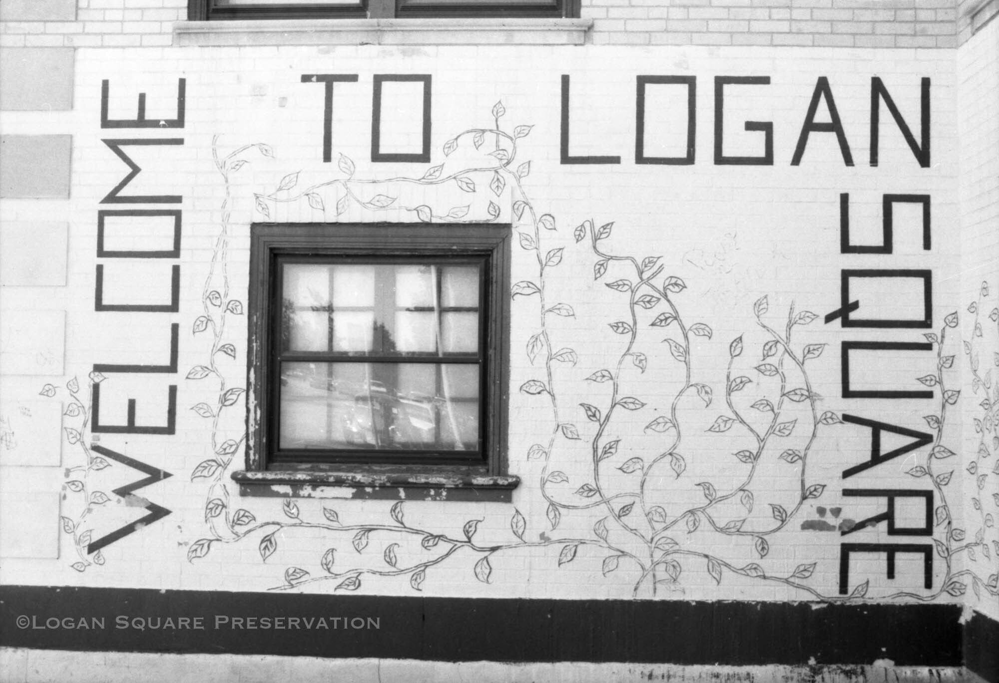 Welcome to Logan Square mural - Aug 11, 1985Description
