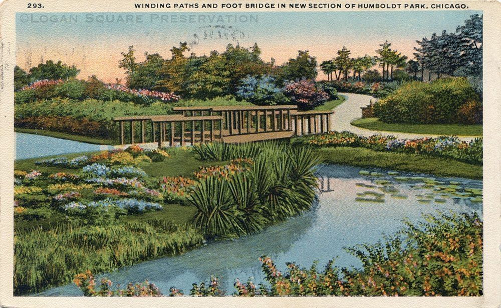 Winding Paths and Foot Bridge in New Section of Humboldt Park, Chicago.Entry/Object ID
