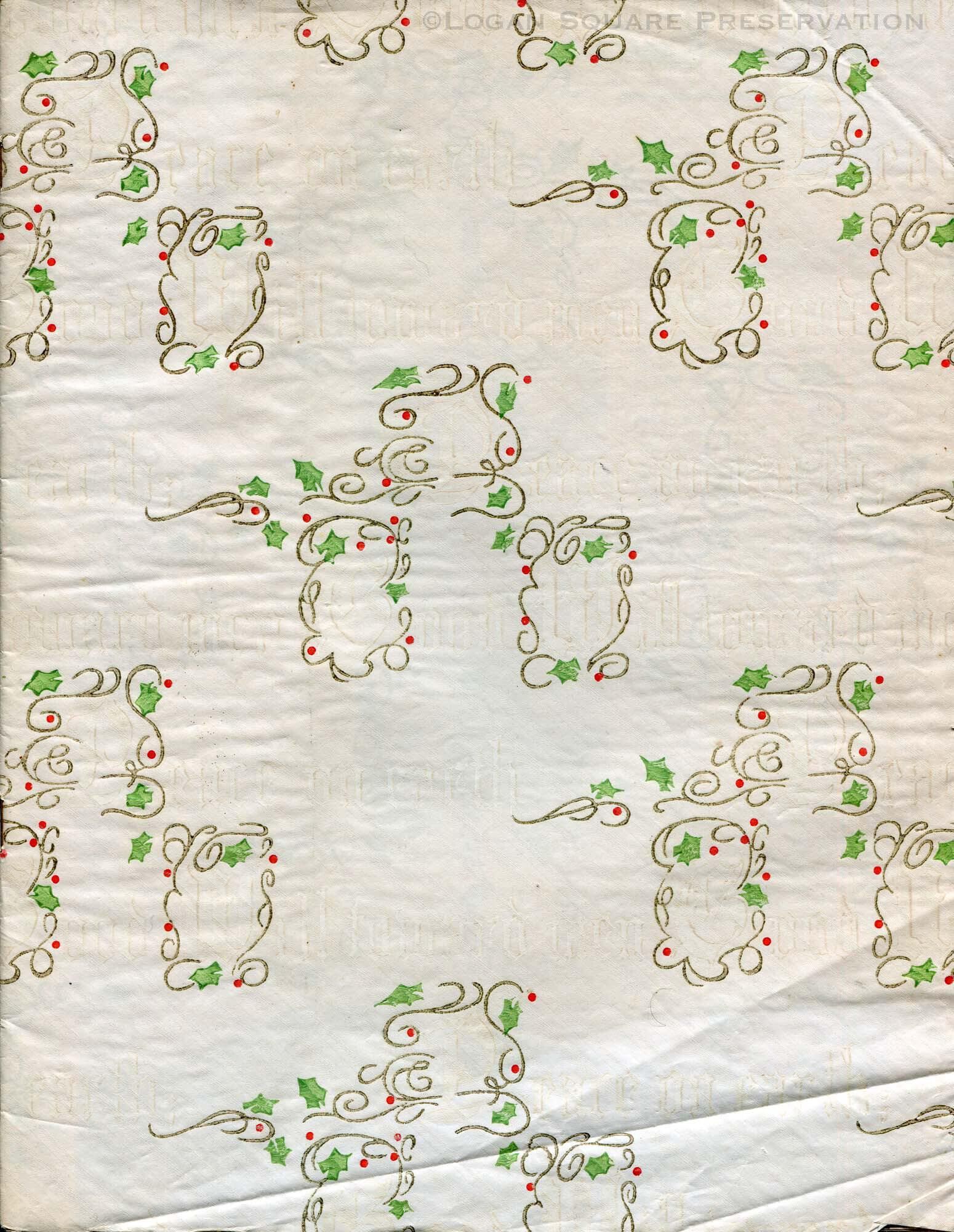 16-page bimonthly company newsletter with photos of factory exterior and interior, article about cotton production, employee anniversaries, company news, map showing employees deployed overseas, wrapped in watermarked Christmas print paper. November/December 1945Publication Details