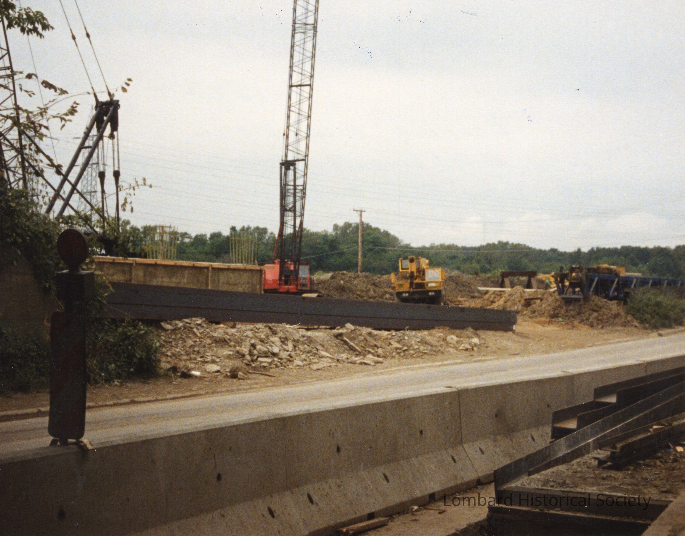 Looking Northwest from under Northwestern Railroad Viaduct. Showing the route of the new tollway, I-355. Photo taken in August 1987.Collection