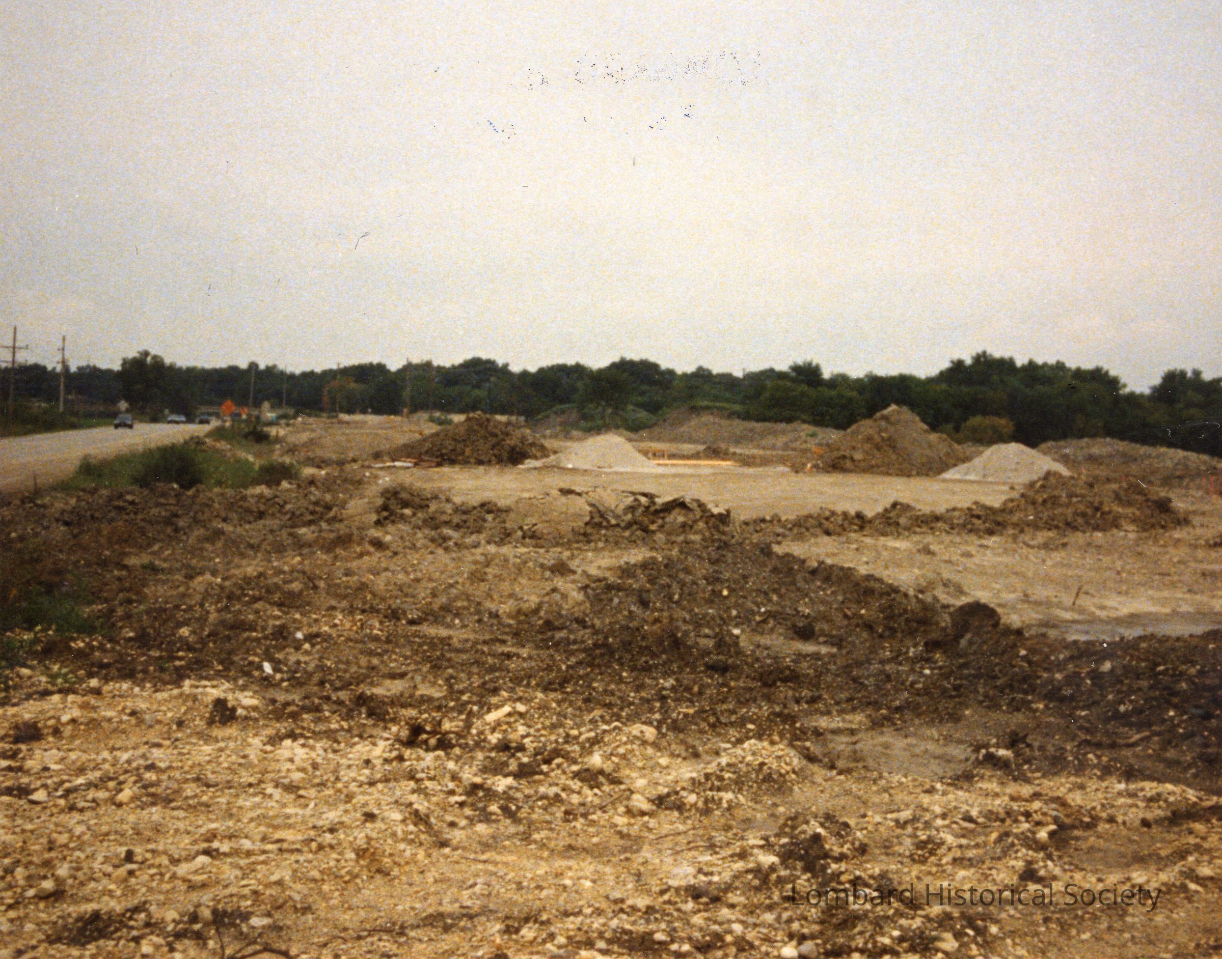 Looking North from Charles Lane & Route 53 (Columbine Avenue). Showing the rough grading for relocated Route 53 (Columbine Avenue) in preparation for new tollway, I-355. Photo taken during construction in August 1987.Collection