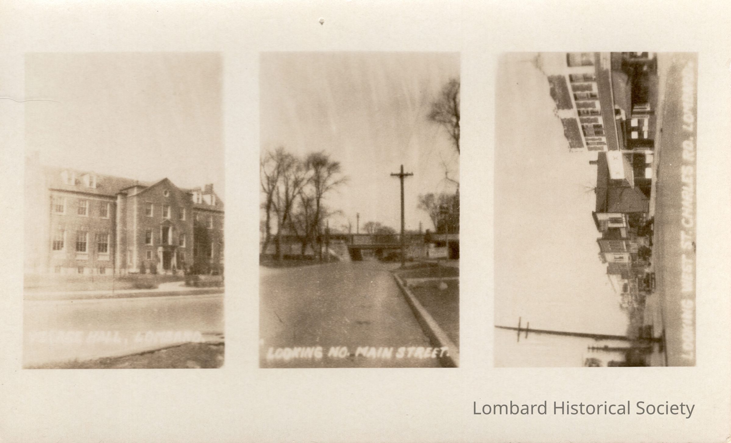 Postcard Featuring Three Small Photos: Lombard Village Hall, View of North Main Street and View of West St. Charles Road (Lake Street).Collection
