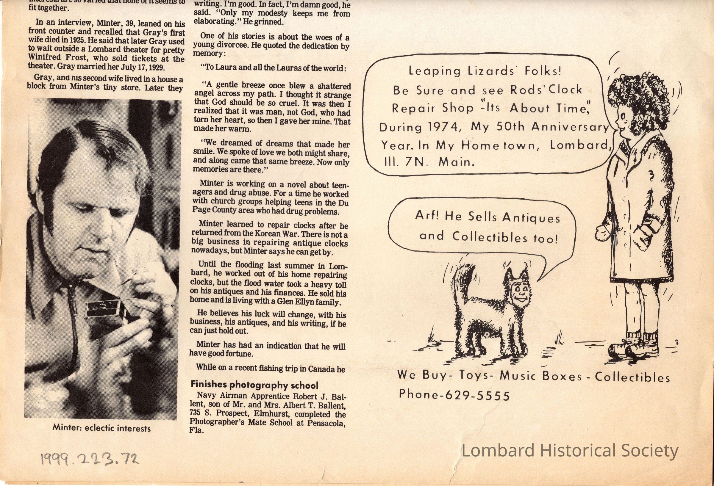 Rods' Clock Repair Shop Advertisement and ArticleEntry/Object ID