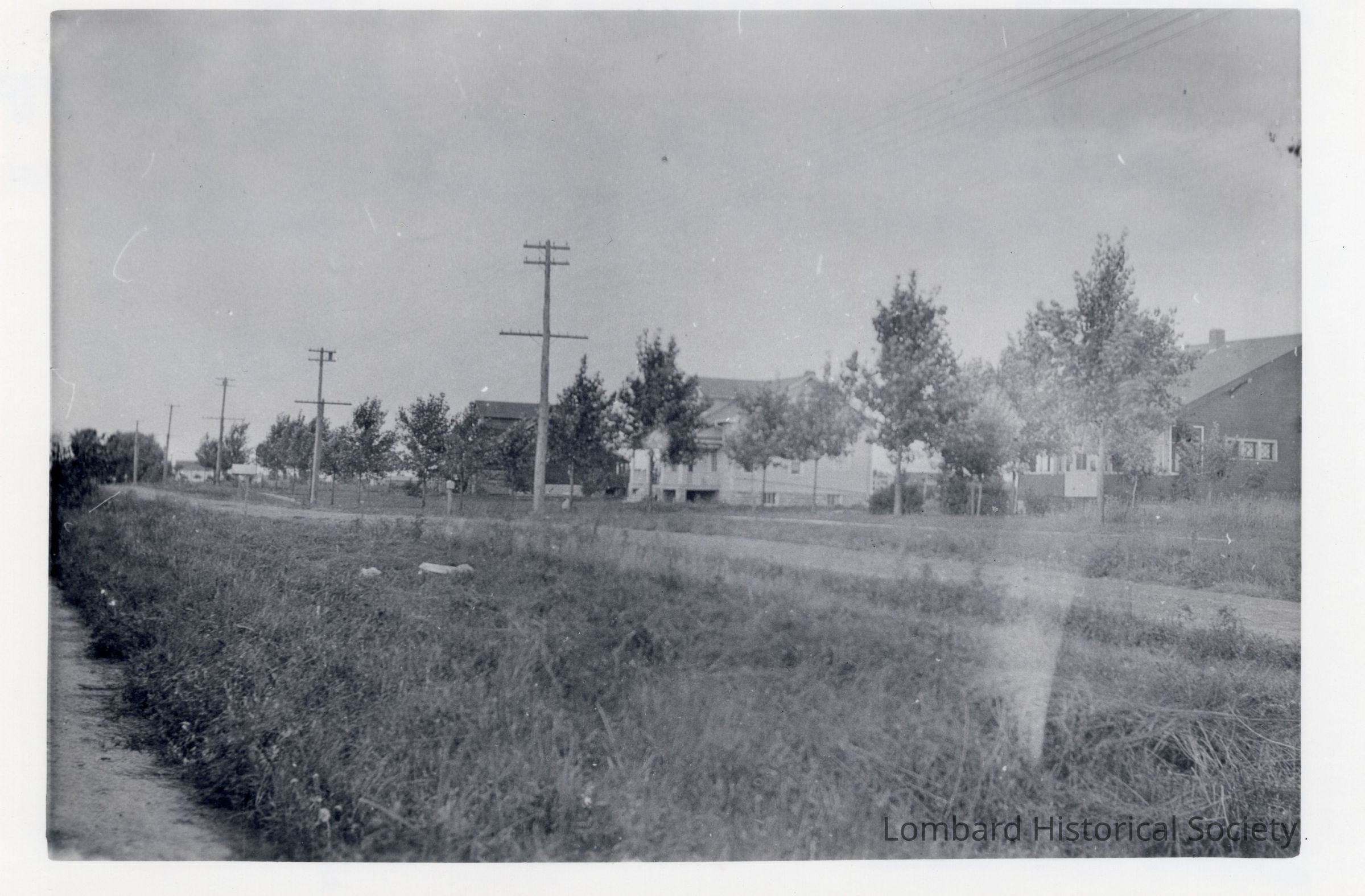P80-78 Westmore Avenue Looking Toward St. Charles Road from point north of the Chicago, Aurora & Elgin Railroad. Roffer's home and Minke home in the background, both are still standing. Picture taken prior to 1917Collection