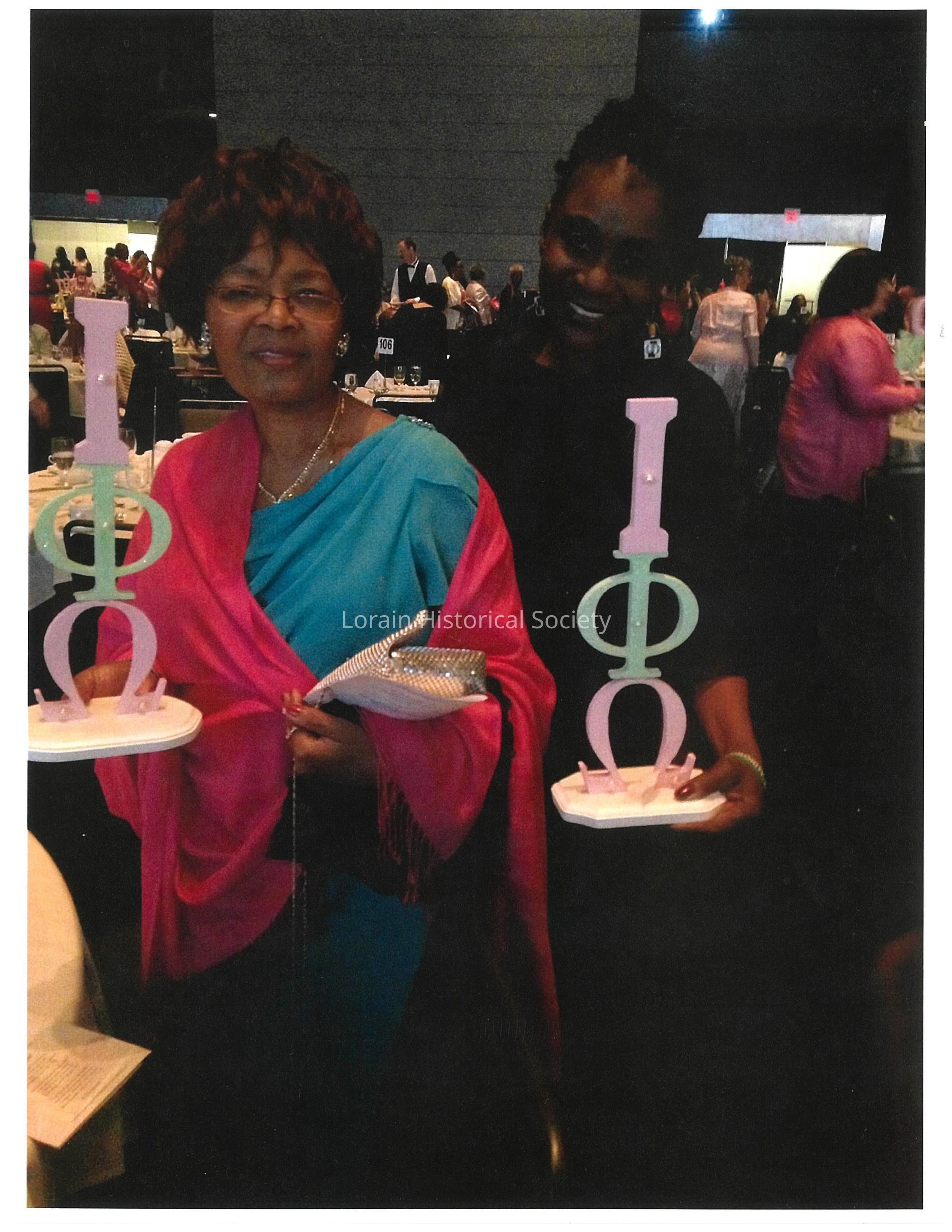 Photo of two members of the Iota Phi Omega chapter of Alpha Kappa Alpha sorority.Collection