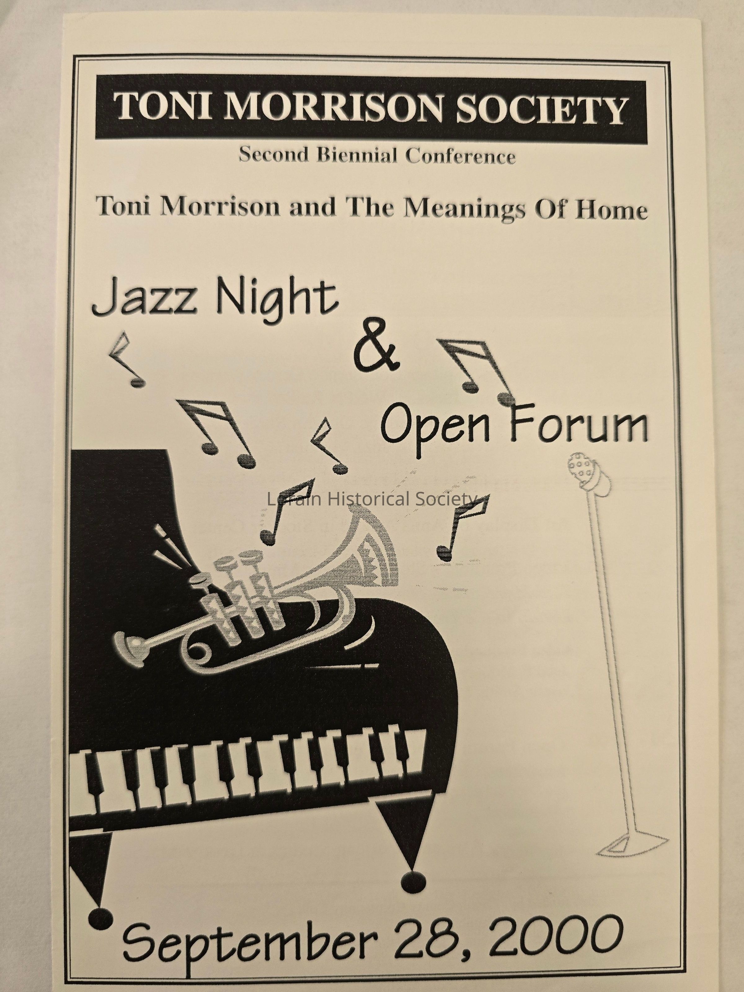 Toni Morrison Society Second Biennial Conference, "Toni Morrison and the Meanings of Home" jazz night and open forum.Acquisition