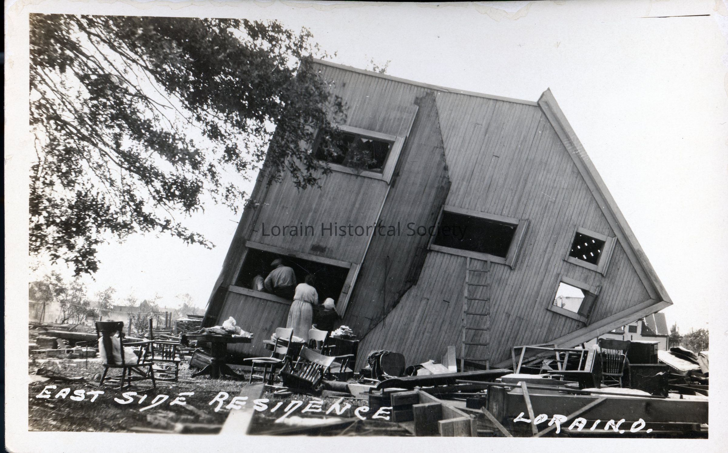 Postcard is view of house on Lorain's East Side, 423 Colorado Avenue, Antonena and Joseph Katchui Home, turned on its side after 1924 Tornado. Postcard reads: "EAST SIDE RESIDENCE LORAIN, O."Acquisition