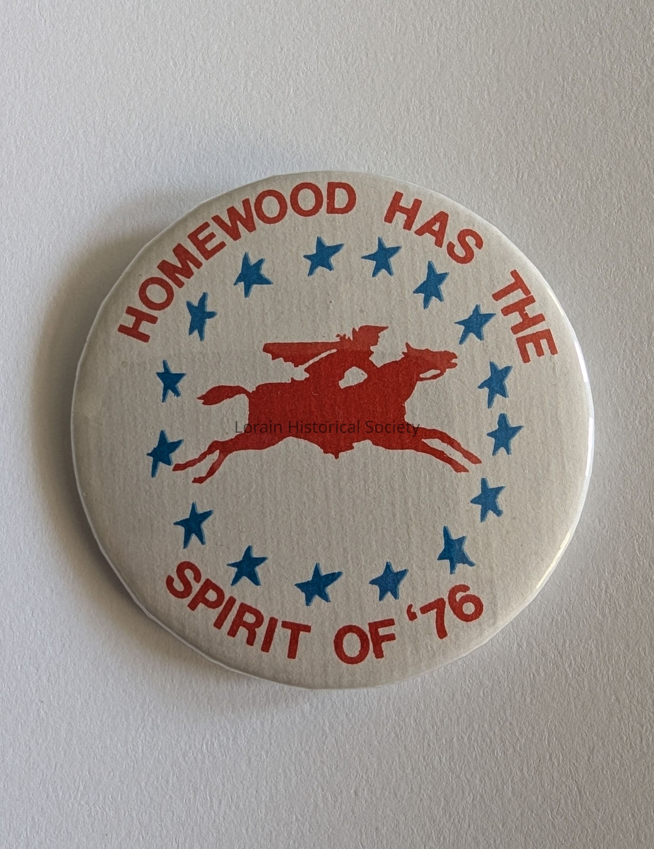Homewood Elementary School pin, "Homewood has the Spirit of '76" with blue stars and red Paul Revere.Acquisition