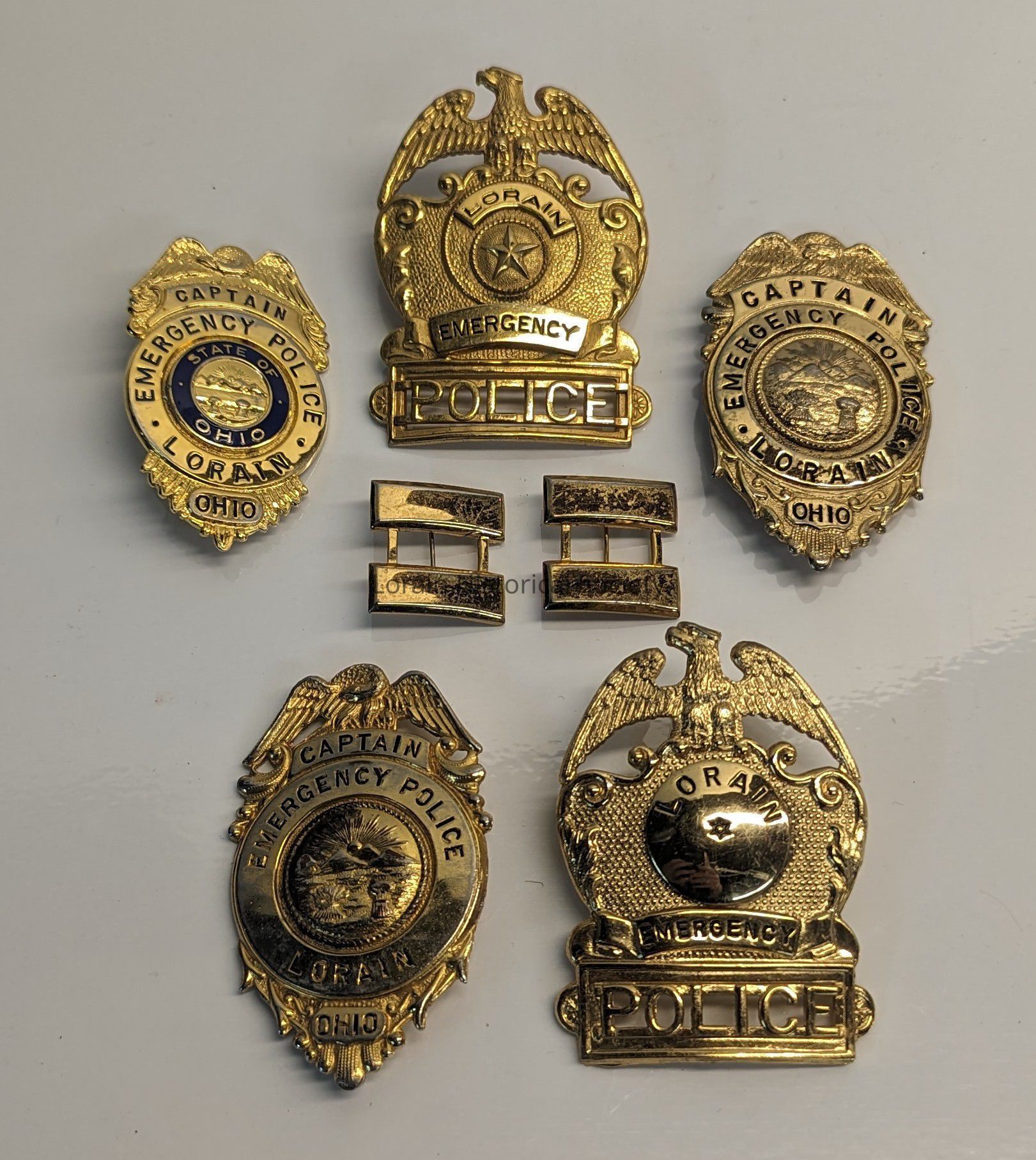 5 Emergency police badges - 1 patch'; 2 pins and 2 gold stripes