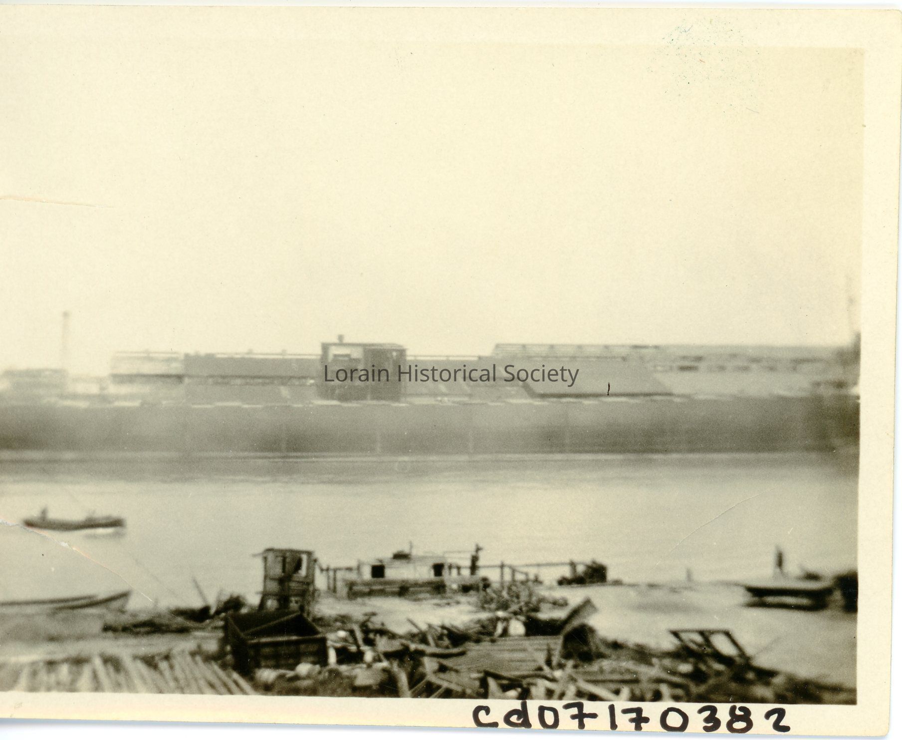 Photograph is black and white of the Shipyards showing damage and destruction from 1924 Tornado.Acquisition