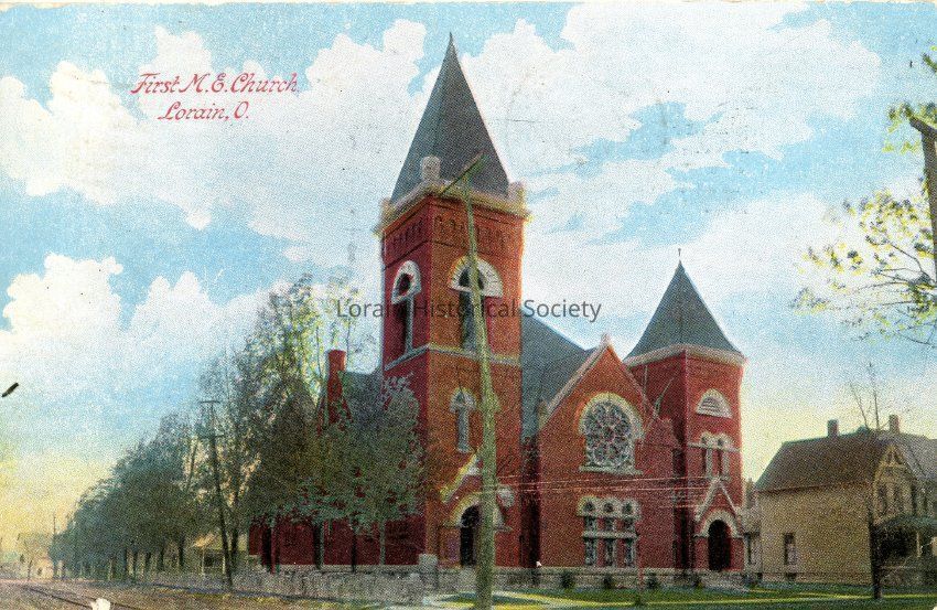 04/27/2022 AMS: jfm083104009. Color Postcard is view of First M.E. Church. Postcard reads: "First M. E. Church, Lorain, O."