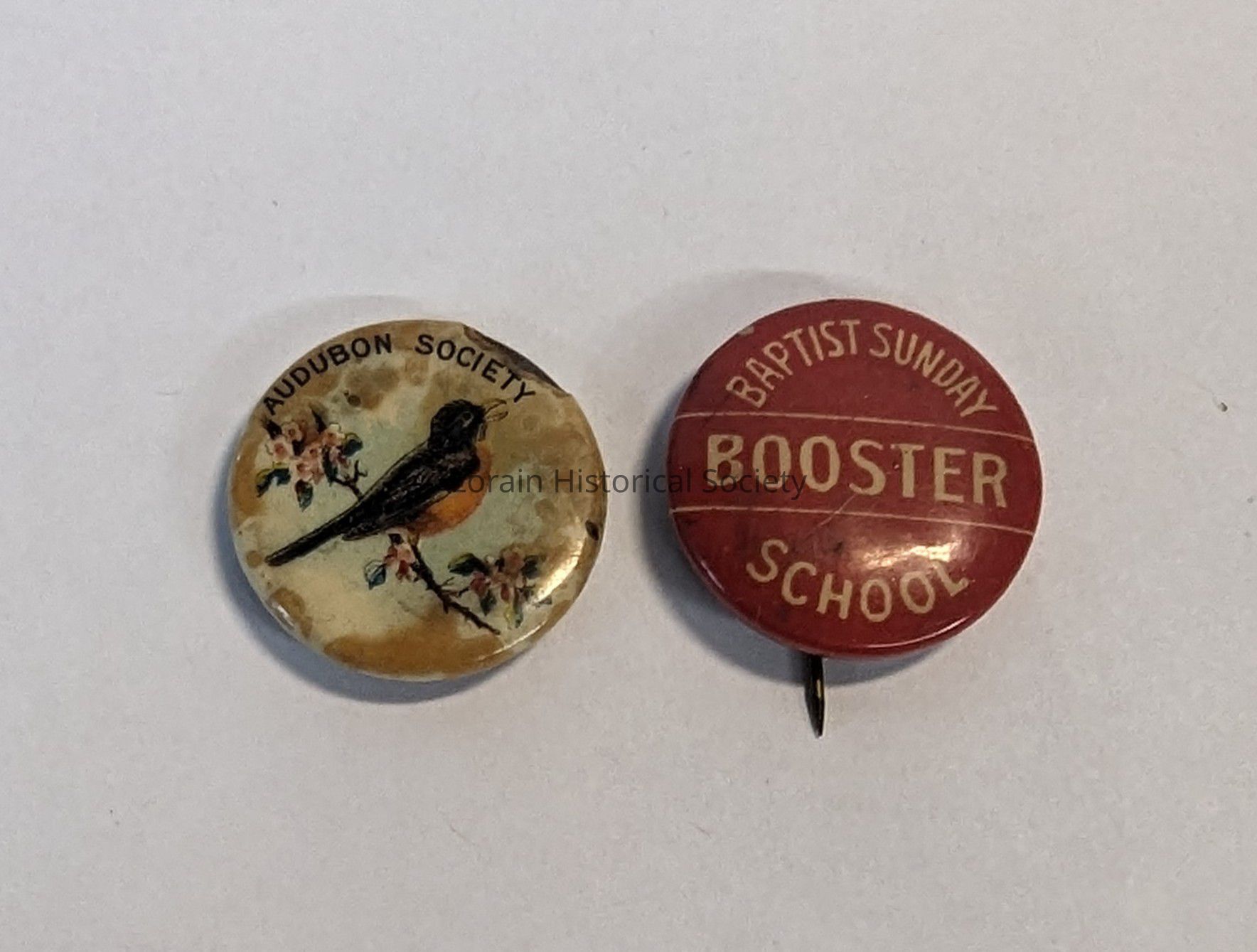 1 Audobon Society pin 1920s 1 Baptist Sunday School booster pin.