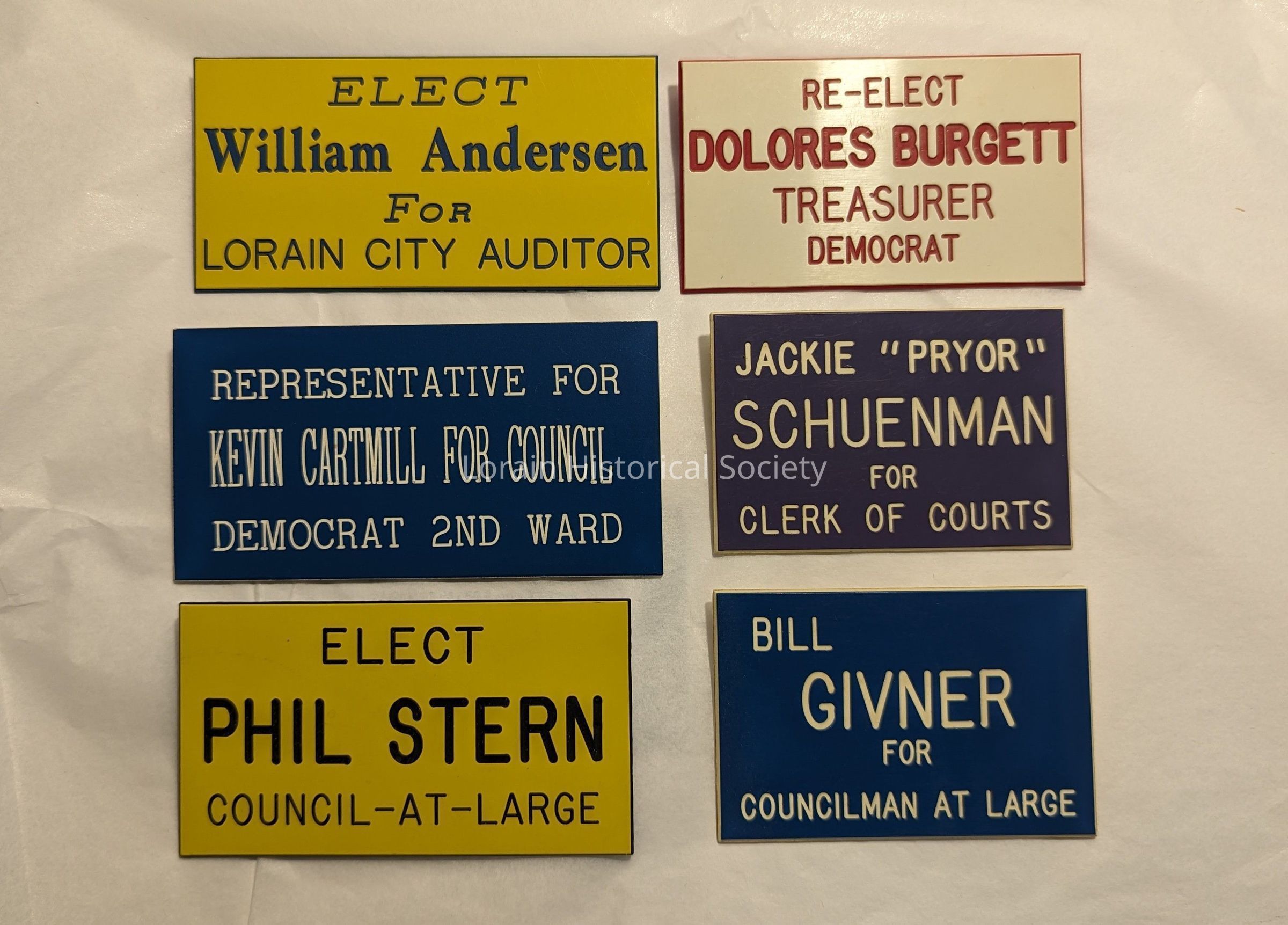 Lorain Campaign Buttons, 6 personal Election Campaign Badges Individual Candidates (lapel)