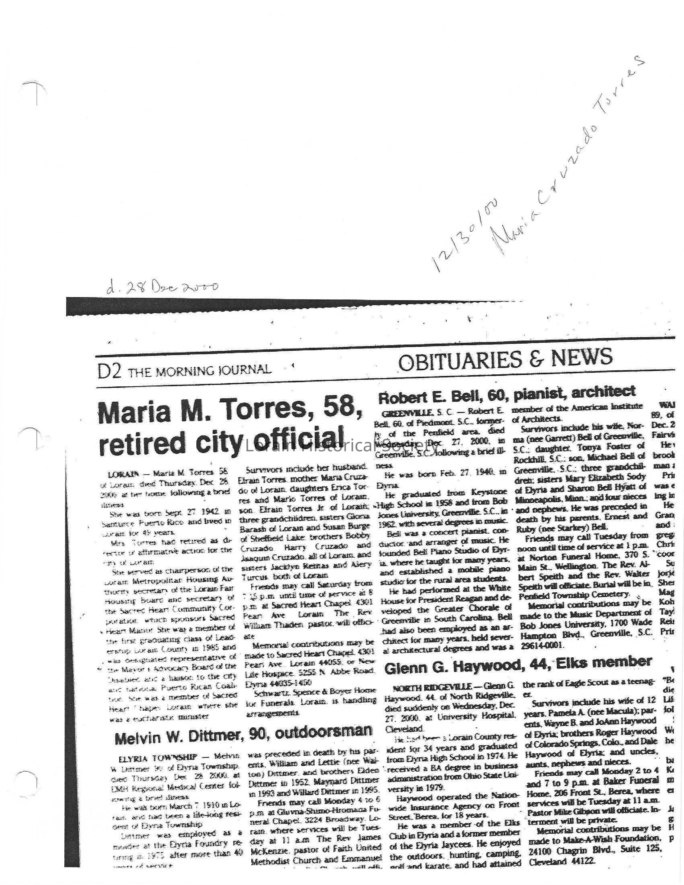 Cruzado, Maria M. Torres obit