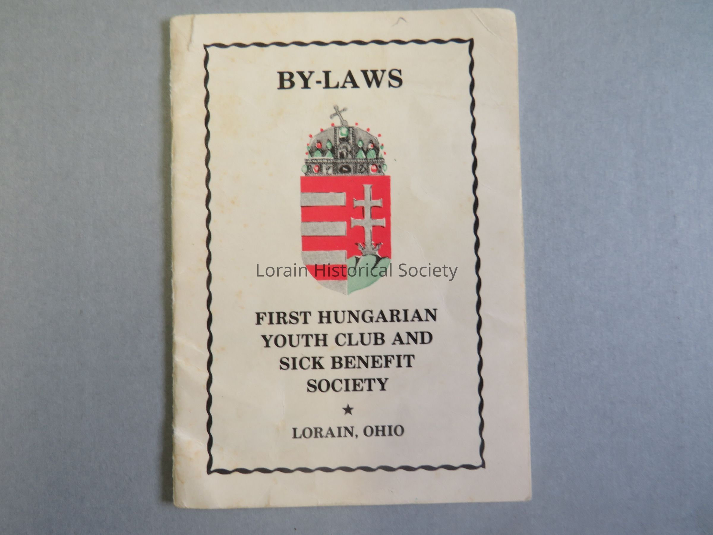 A small booklet containing the By-Laws of the First Hungarian Youth Club and Sick Benefit Society of Lorain, Ohio.