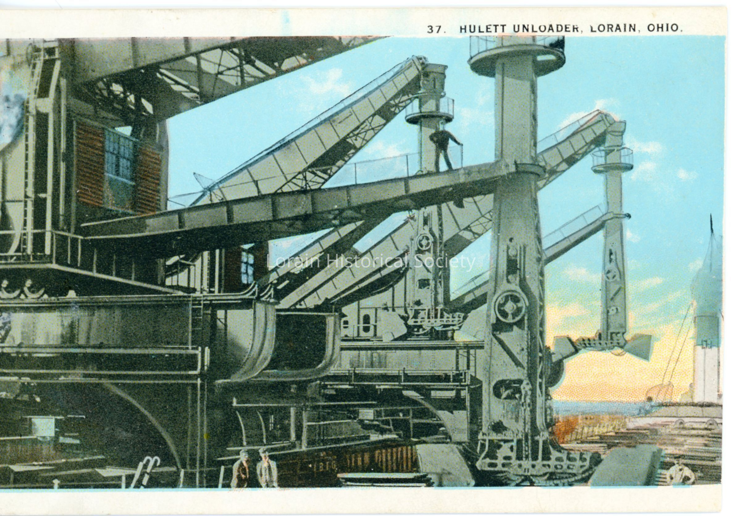 09/21/2022 AMS: jfm051104052. Color Postcard. Postcard is view of Coal Unloader on Black River, Lorain Harbor. Postcard reads: "37. Hulett Unloader, Lorain, Ohio".