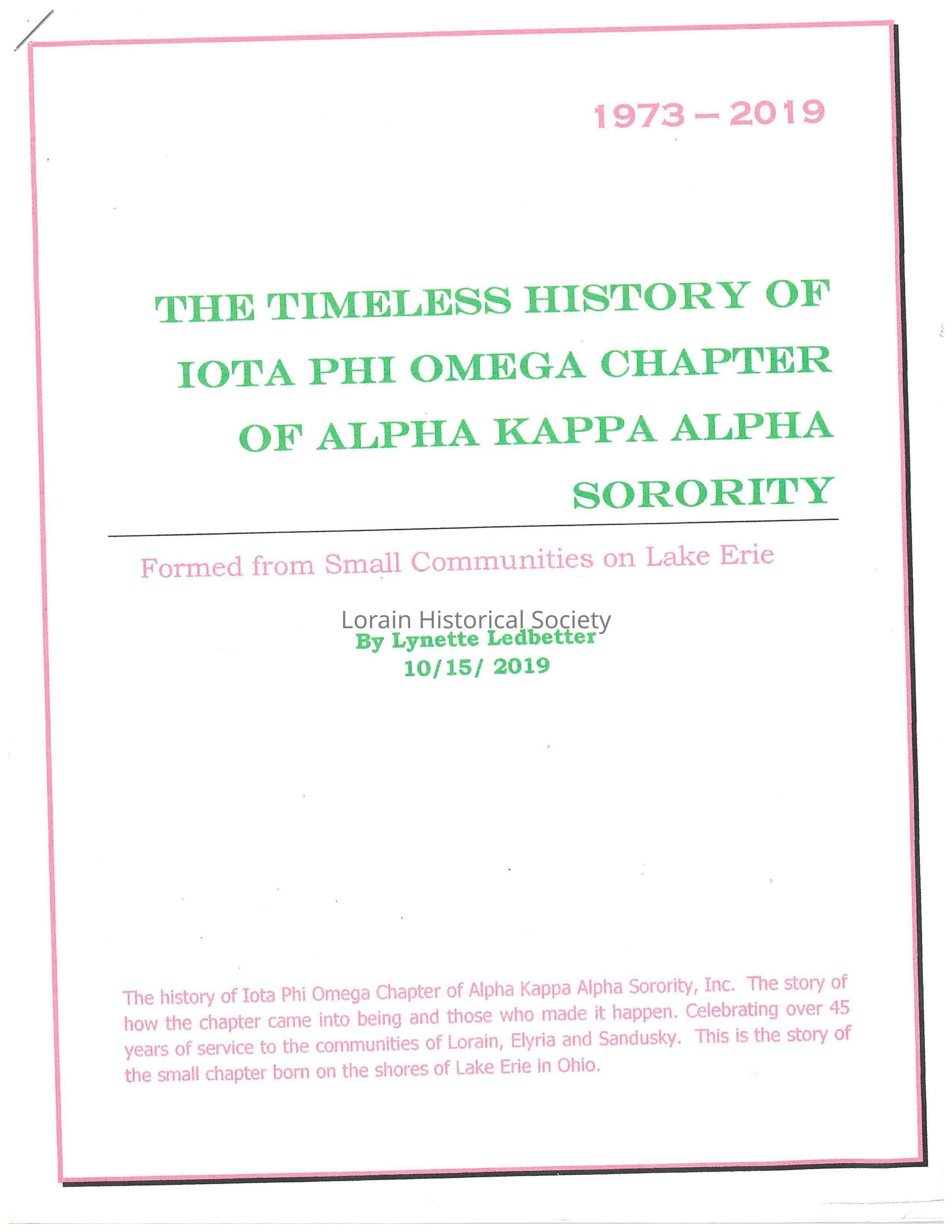 This historical account detailing the founding of the Iota Phi Omega chapter of Alpha Kappa Alpha sorority was written by sorority founder Lynette Ledbetter in 2019.Collection
