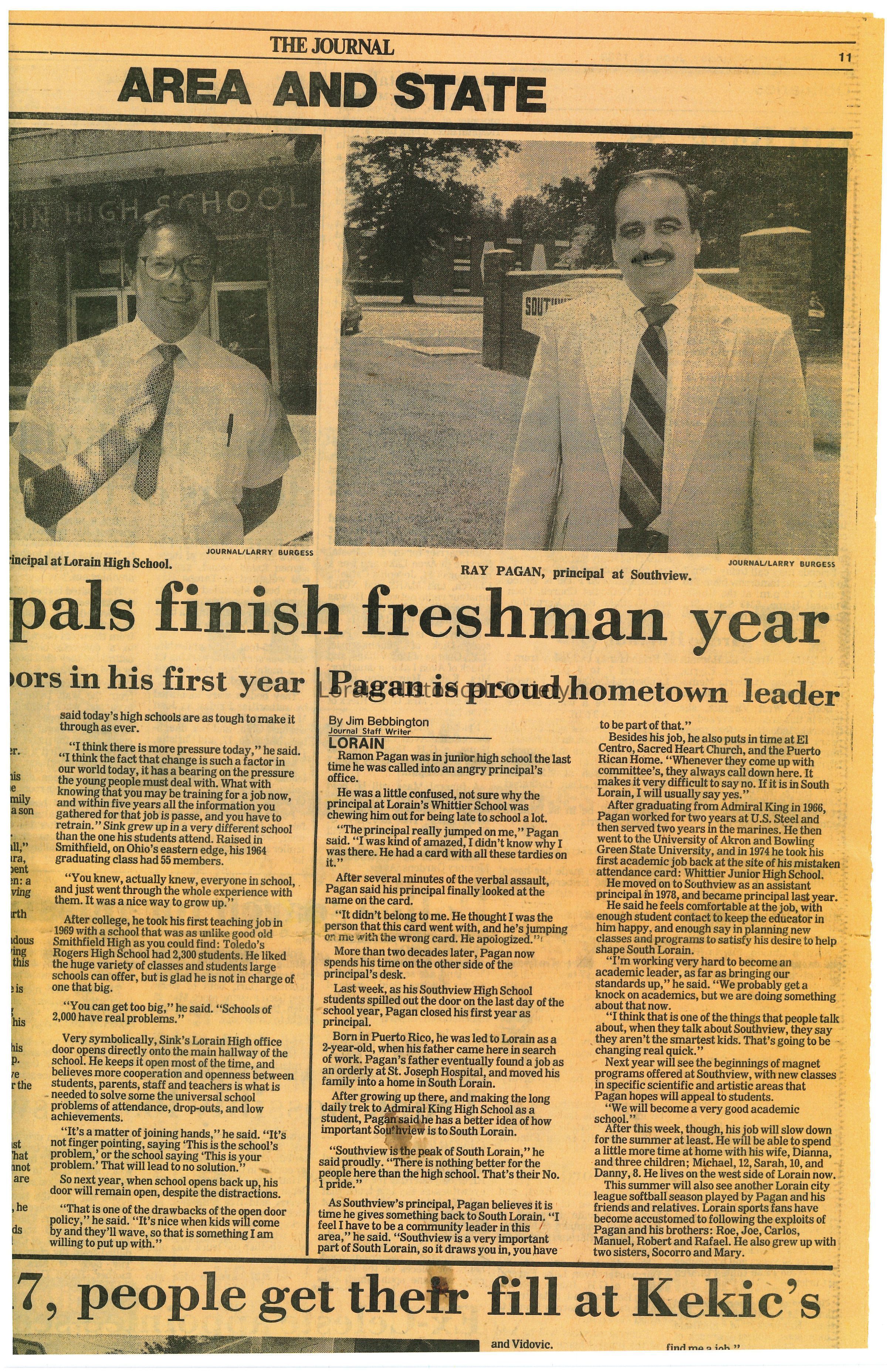 Newspaper article from The Morning Journal reviewing Ray Pagán's first year as principal at Southview High School in Lorain, Ohio.Collection