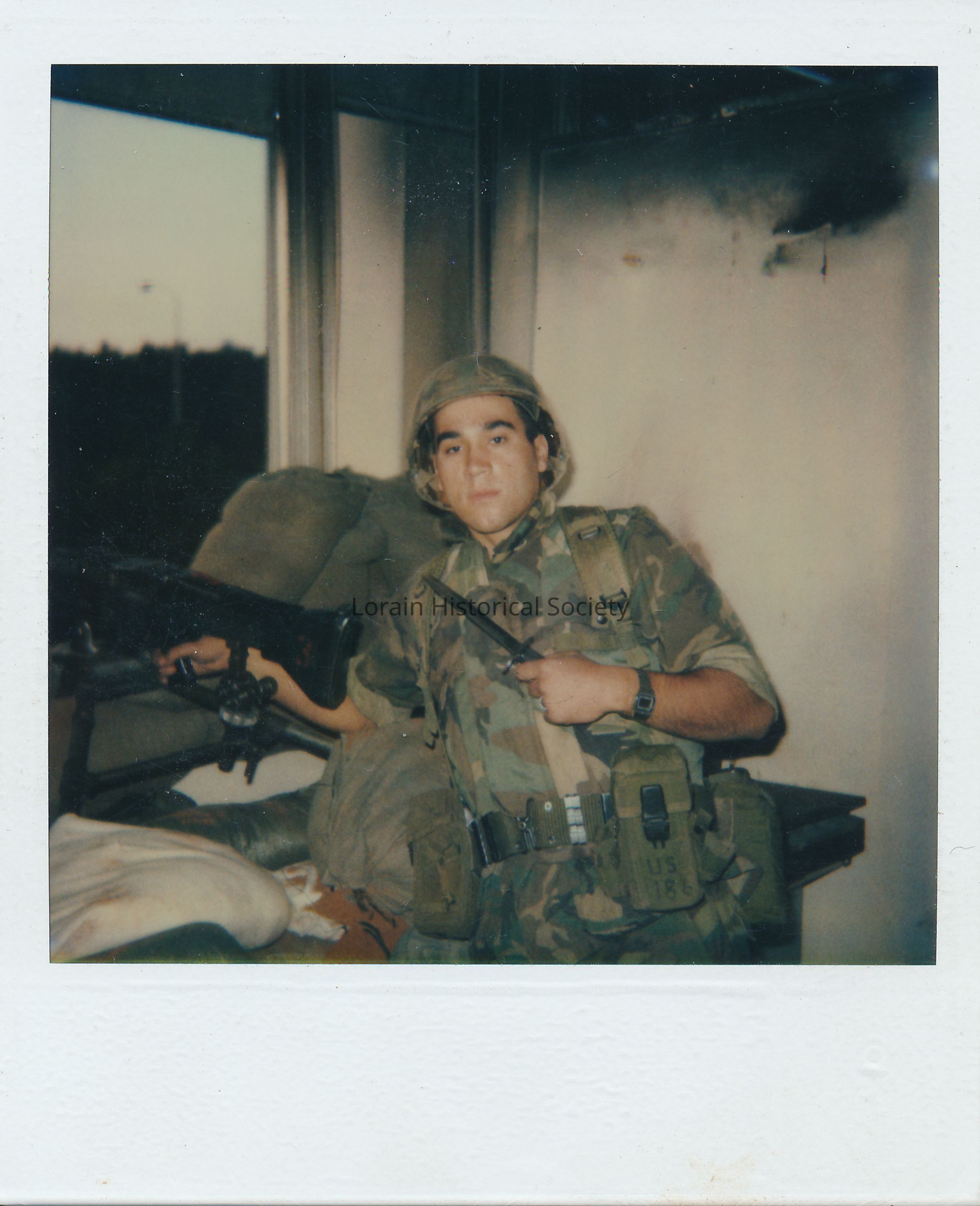 Photo of Arvin Morell manning his gun in Lebanon in the early 1980s. He is seen wearing his fatigues. Arvin served in the U.S. Marine Corps between 1980 and 1984 and participated in military peace-keeping operations in Lebanon during the Lebanese Civil War.Collection