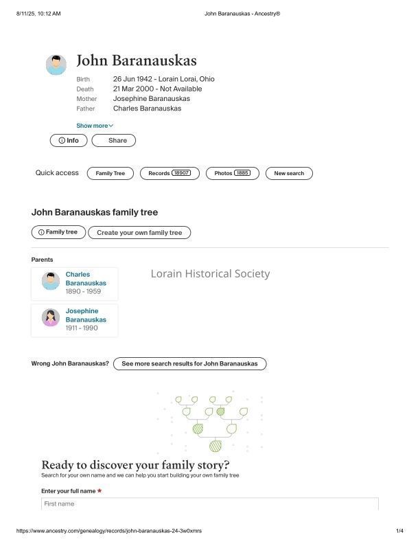 John Baranauskas - Ancestry®Scope and Content