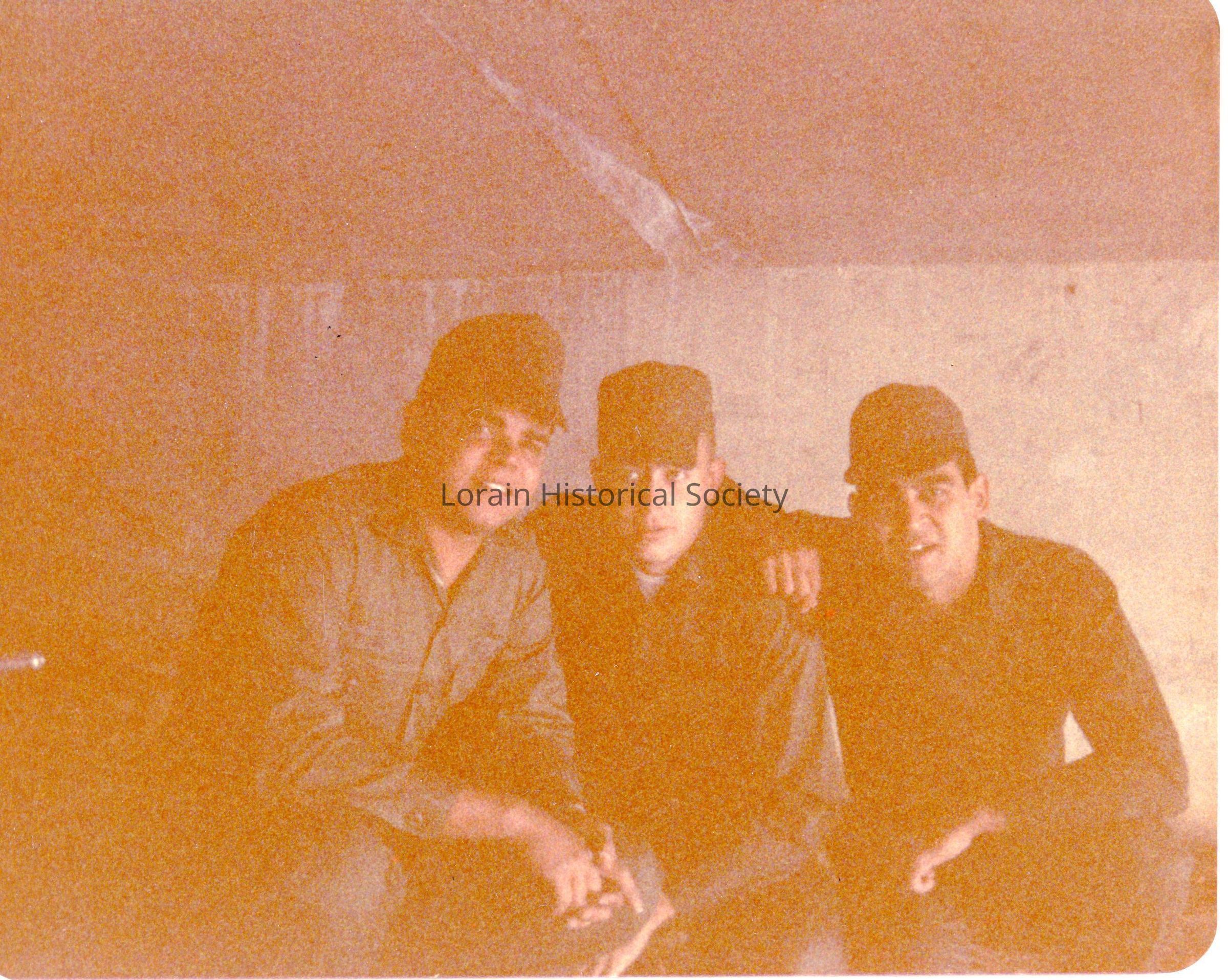 Photo of Mike Ferrer (far right) hanging out with two friends during basic training at Fort Campbell, Kentucky in August 1980. They are sitting under a bridge because they snuck out at night to drink beer together. Mike served in the U.S. Army between 1980 and 1985 and was a member of the Commander-in-Chief's Guard, which was a special ceremonial unit.Collection
