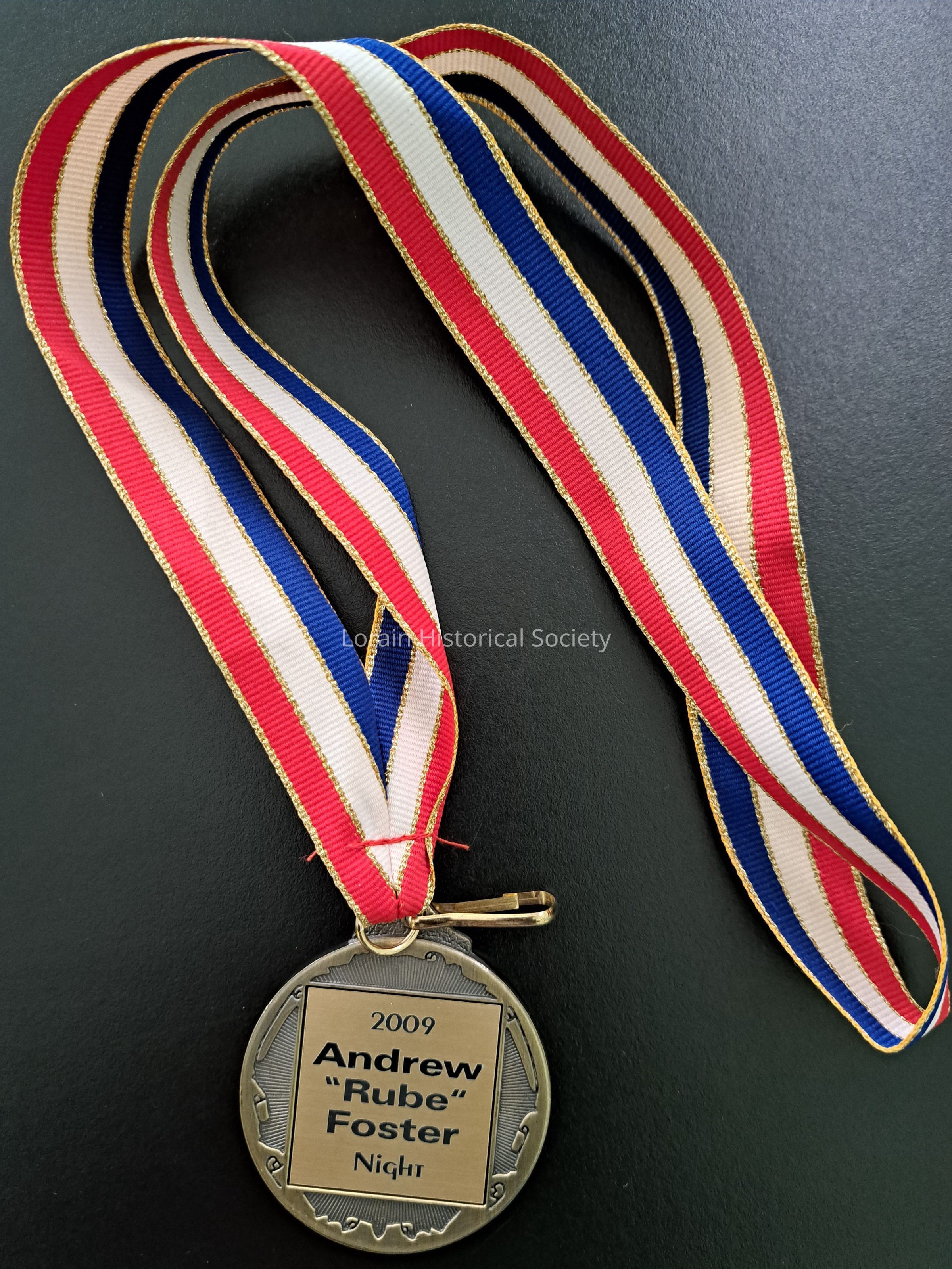 This medal was given to Arthur Rogers Jr. (also known as Shoo Bootie or Bootie) at the 2nd Annual Rube Foster Night at the Pipe Yard which was sponsored by the National Council of Negro Women on April 26, 2009. The Lorain Black Athletic Club (also known as the Black A.C.s) were honored at this event. Rube Foster was a pitcher and a league executive for the Negro baseball leagues. He is often referred to as the "Father of Black Baseball".Collection