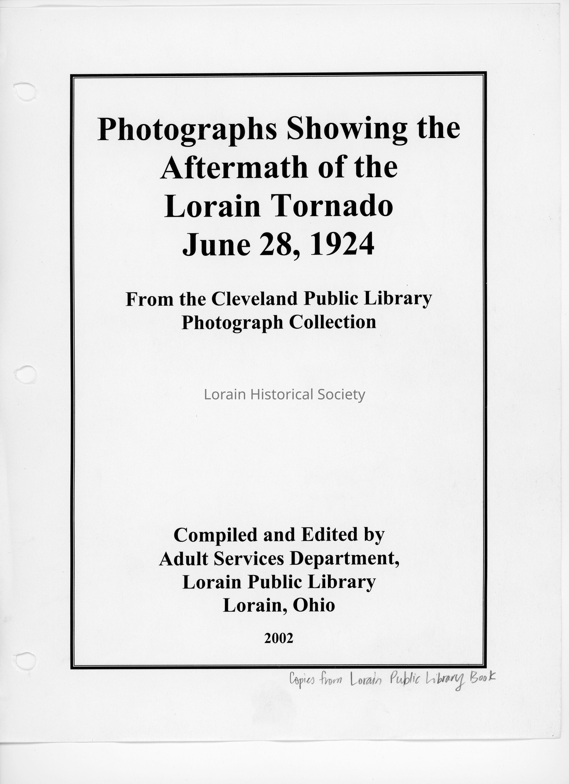 Compiled and Edited by Adult Services Department, Lorain Public Library, Lorain, Ohio 2002