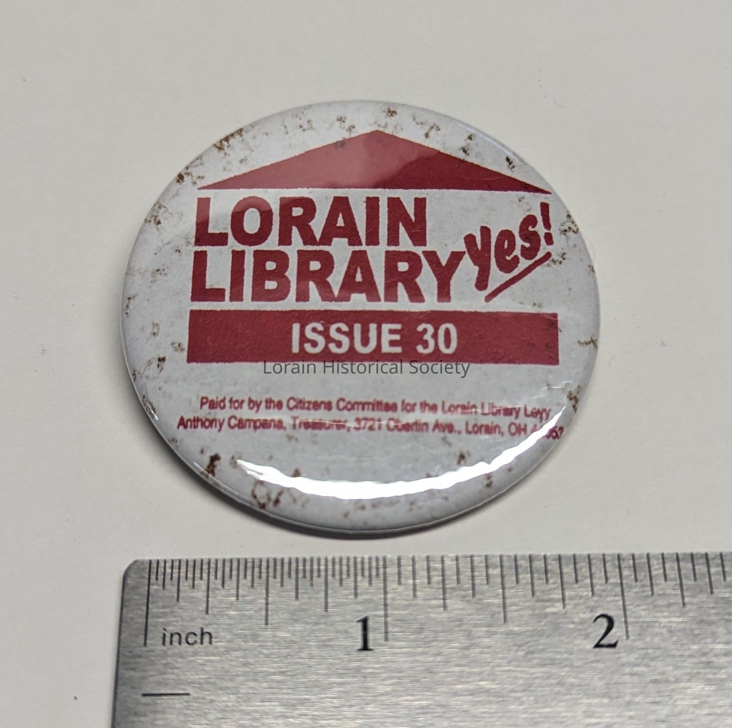 Lorain Library "Yes" Issue 30 2001 button
