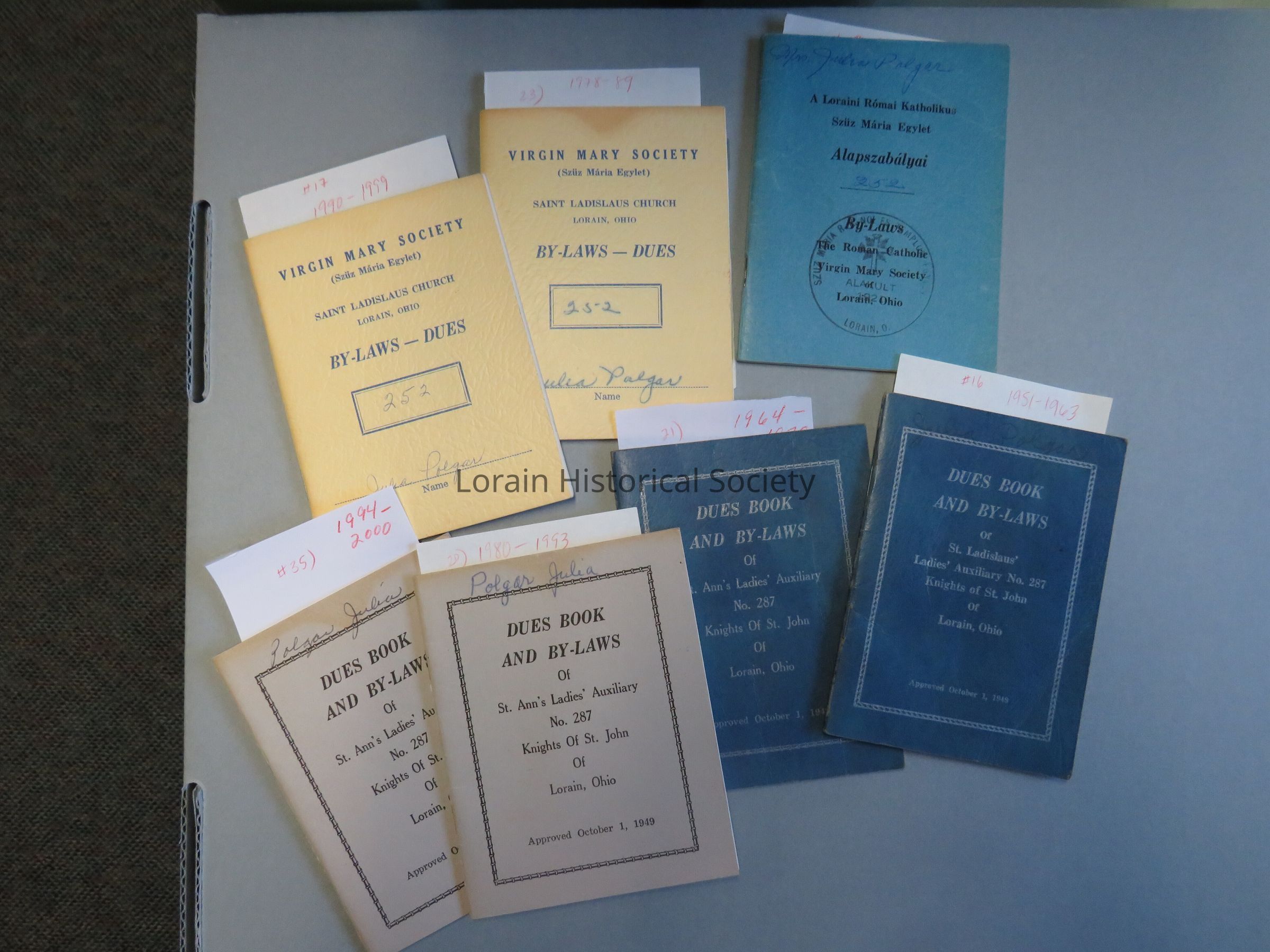 Dues books and by-laws (7) from societies within Catholic parishes in Lorain, Ohio: