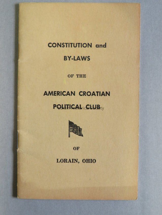 A booklet of 'Constitution and By-Laws' of the American Croatian Political Club of Lorain, Ohio.Acquisition