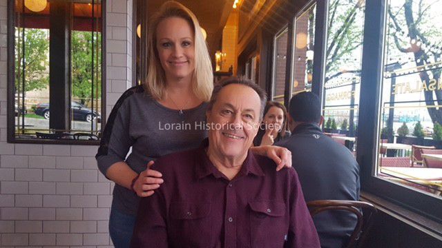 Jim Abel, seated at a restaurant with his daughter Heather.Collection
