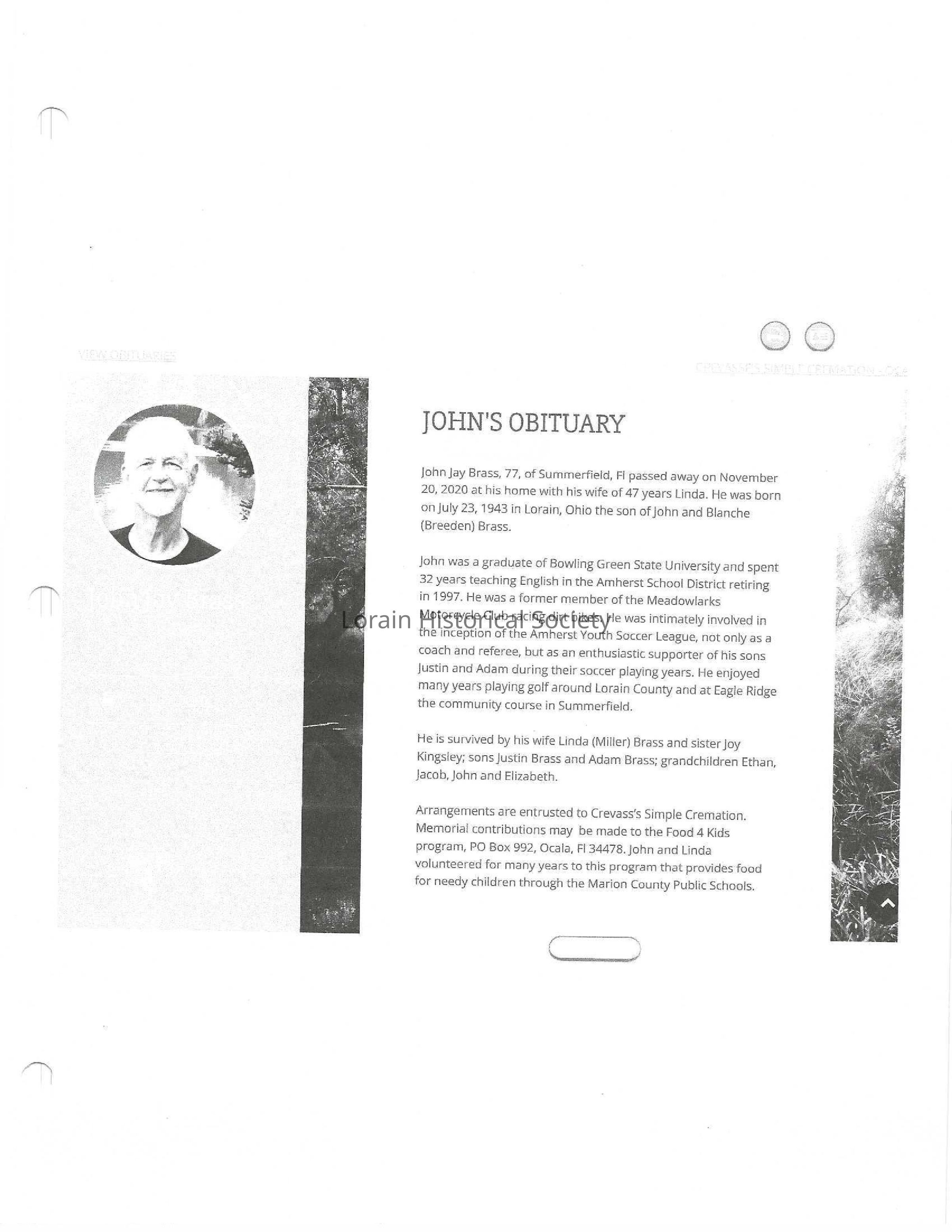 Brass, John Jay obit