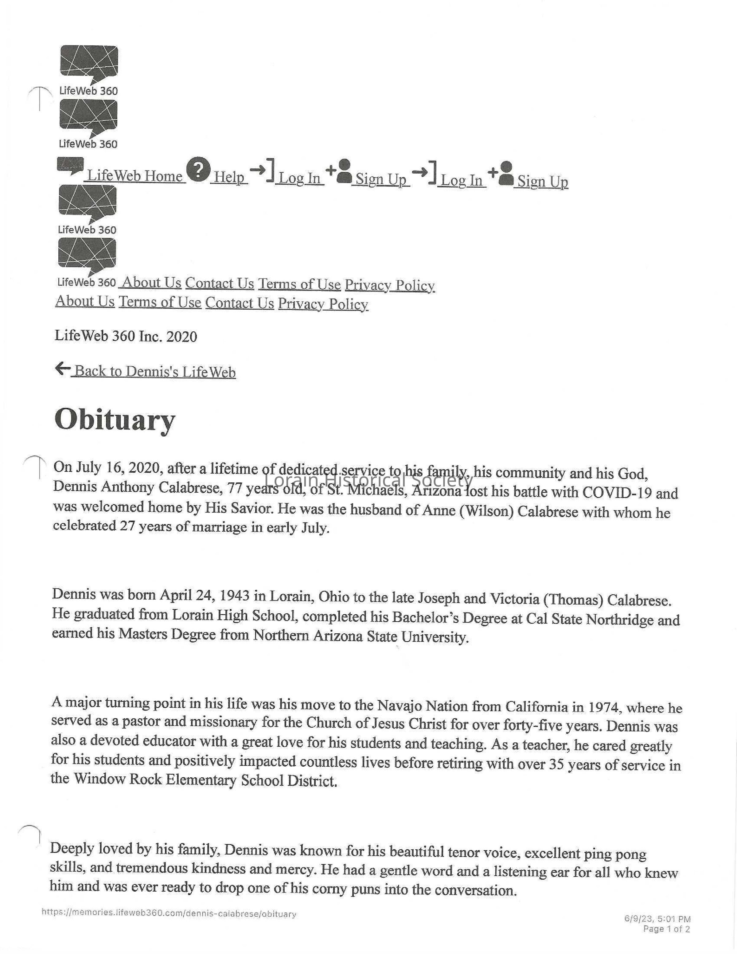 Calabrese, Dennis Anthony obit