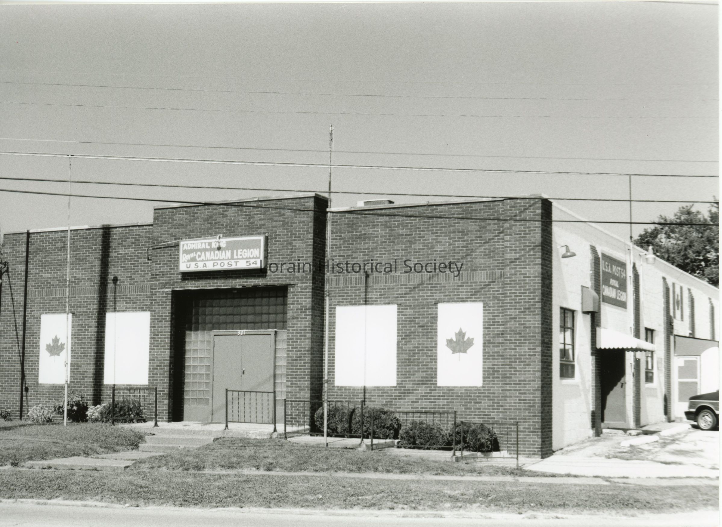 Black and white photo of the Canadian Legion Post 54 building at 321 Colorado Ave.