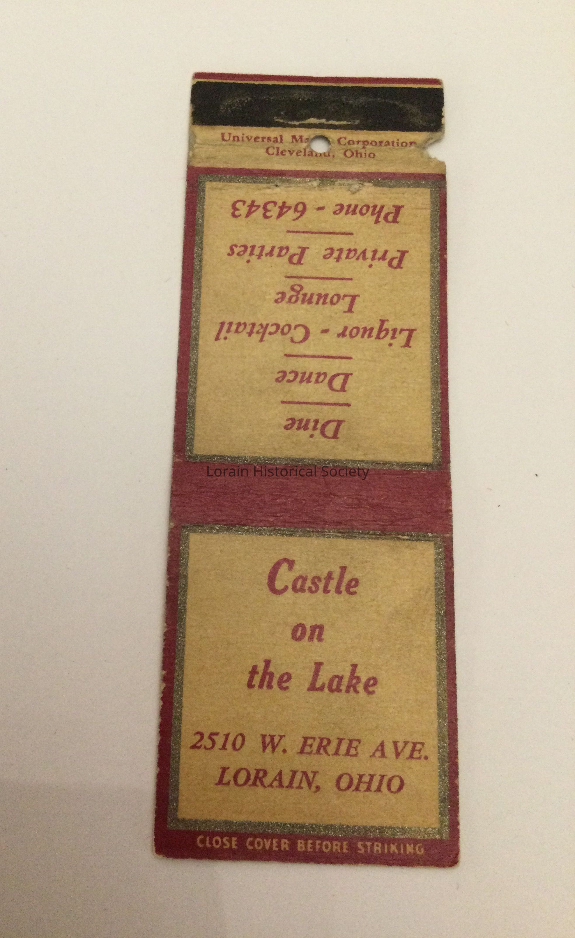 A collection of matchbook covers advertising Lorain, Ohio businesses, social clubs, bars, restaurants, associations from the 1930's through the 1950's.Acquisition
