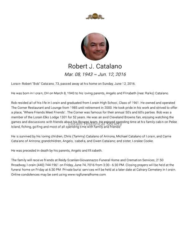 Robert J. Catalano Obituary, Lorain High Class of 1961ACollection