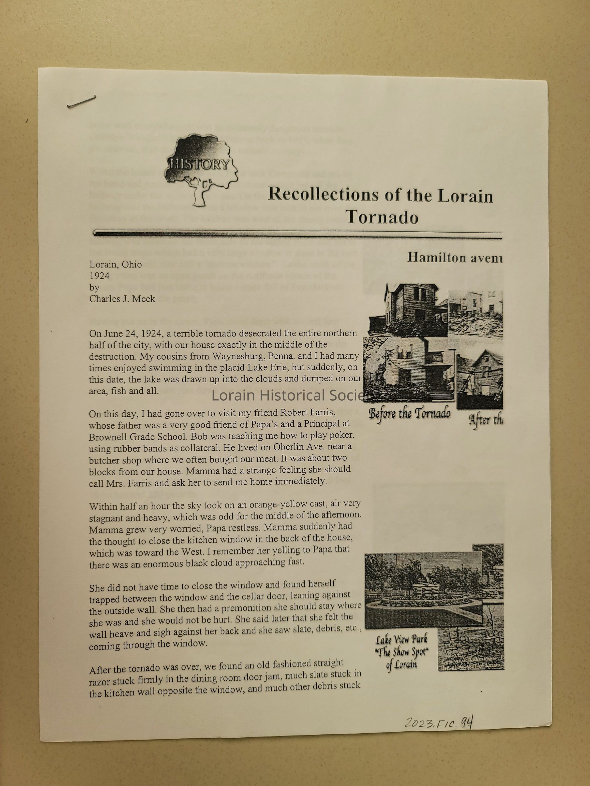 Charles J. Meek, "Recollections of the Lorain Tornado"Context