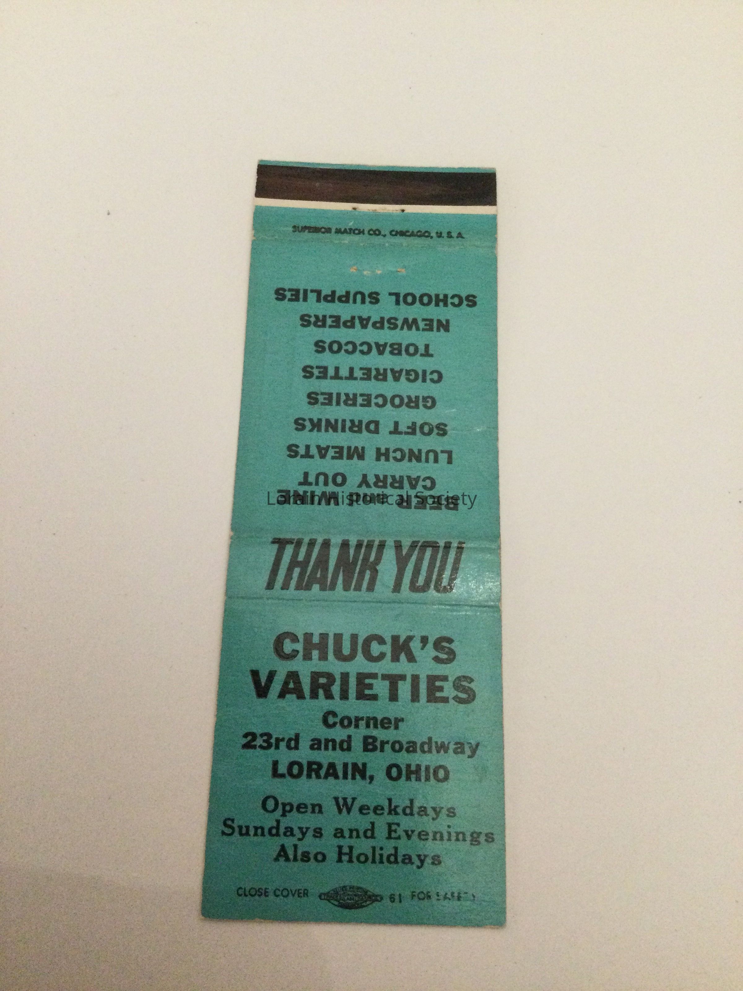 A collection of matchbook covers advertising Lorain, Ohio businesses, social clubs, bars, restaurants, associations from the 1930's through the 1950's.Acquisition