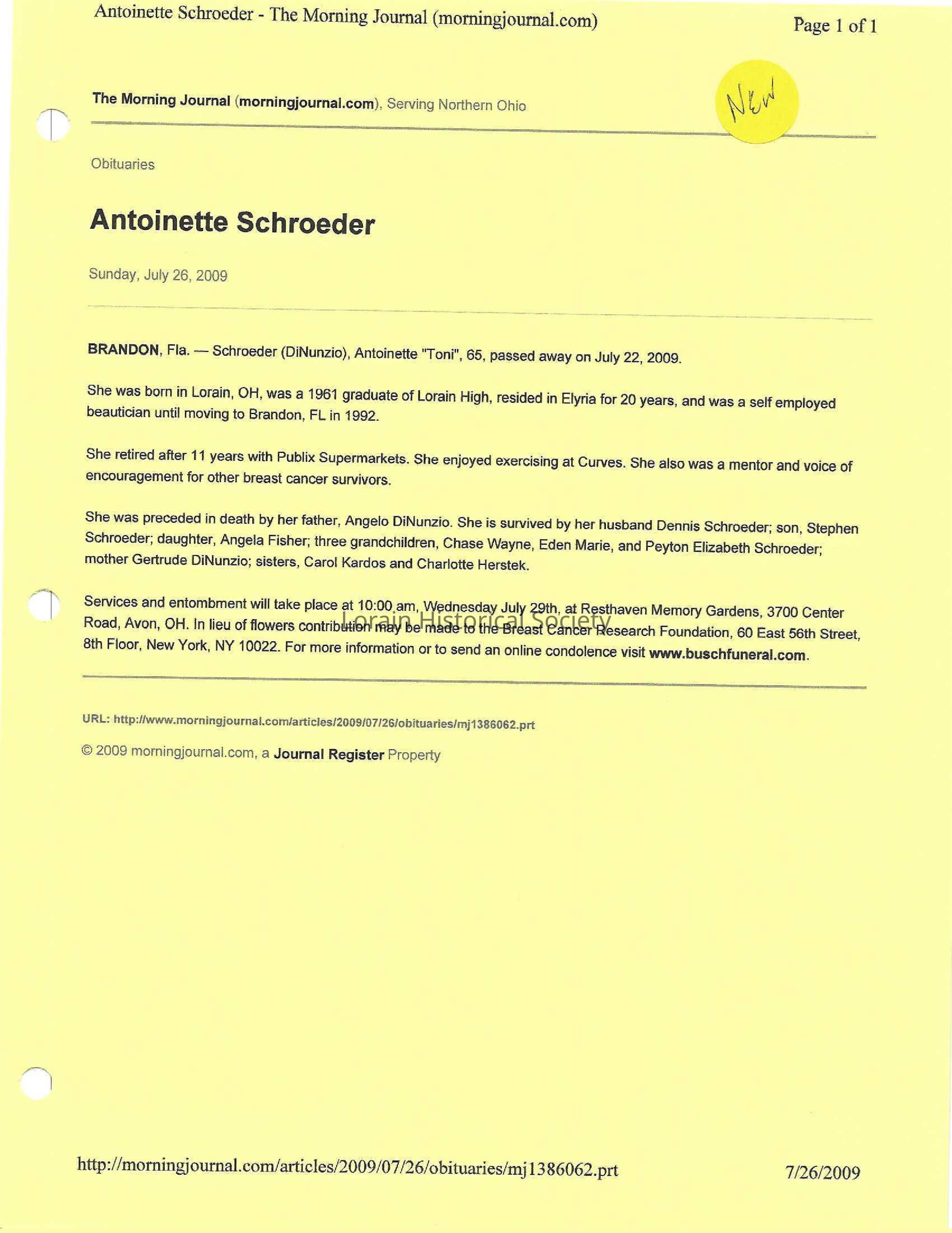 DiNunzio, AntoinetteSchroeder obit