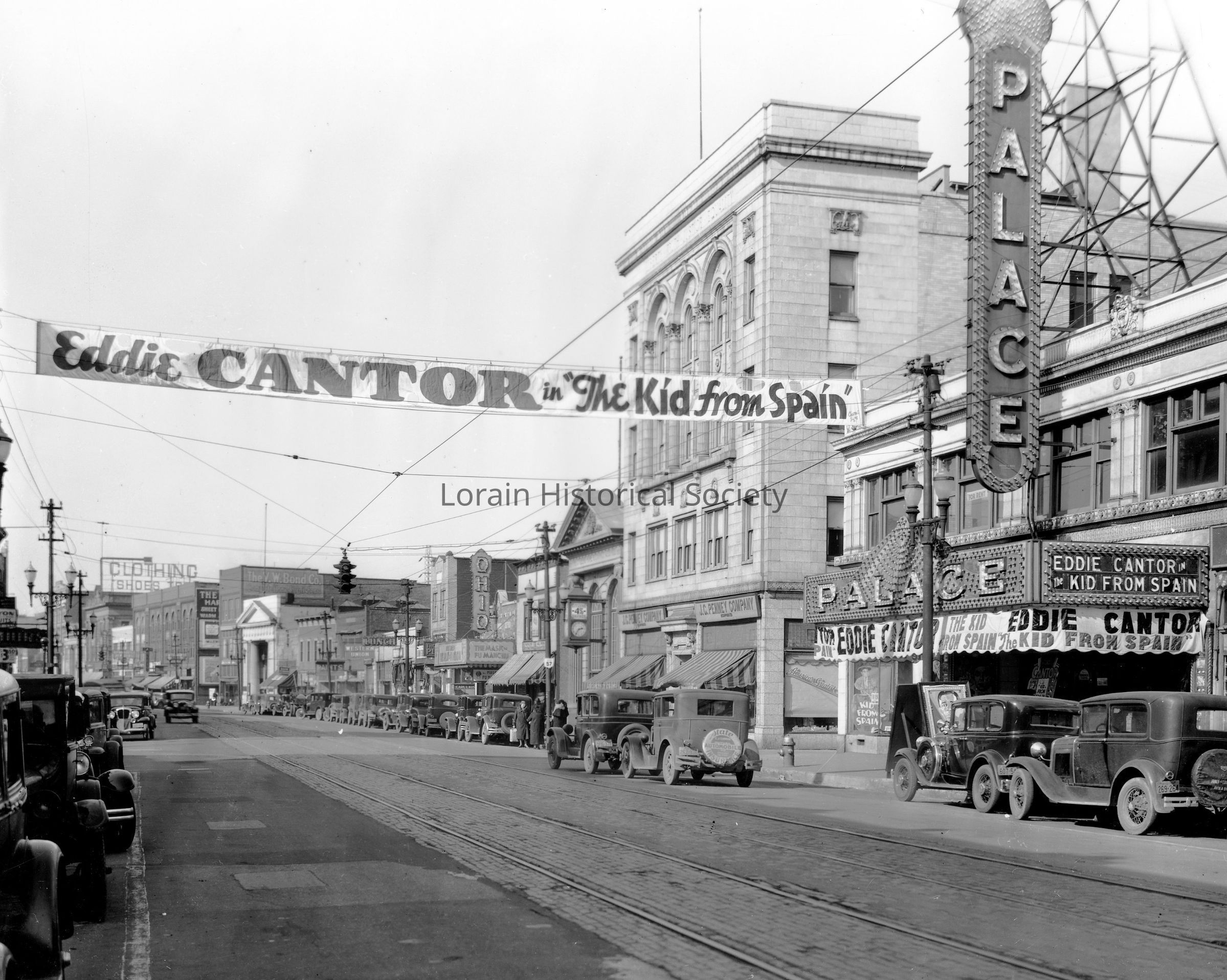 Includes Eagles building with J.C. Penney store, Ohio Theater, Bond, bank buildings, clothing signs.Acquisition