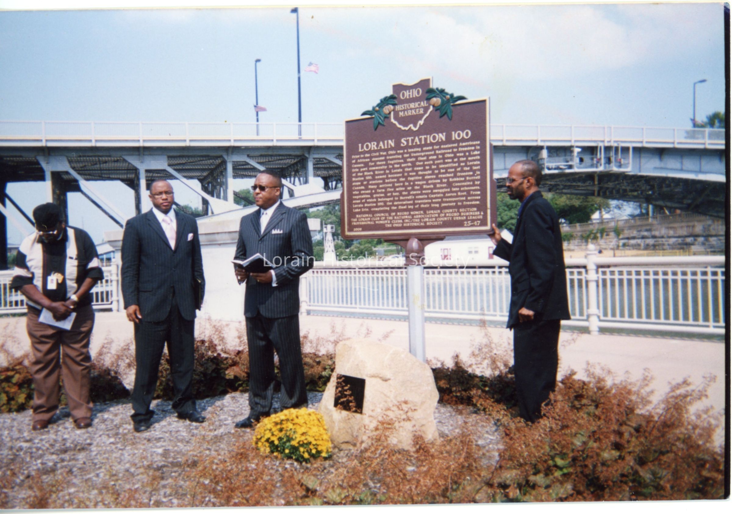 Dedication of the Lorain Station 100 (Or "Stop 100") Ohio Historical Marker at Black River Landing. Back of photo dated 9-15-2006.
