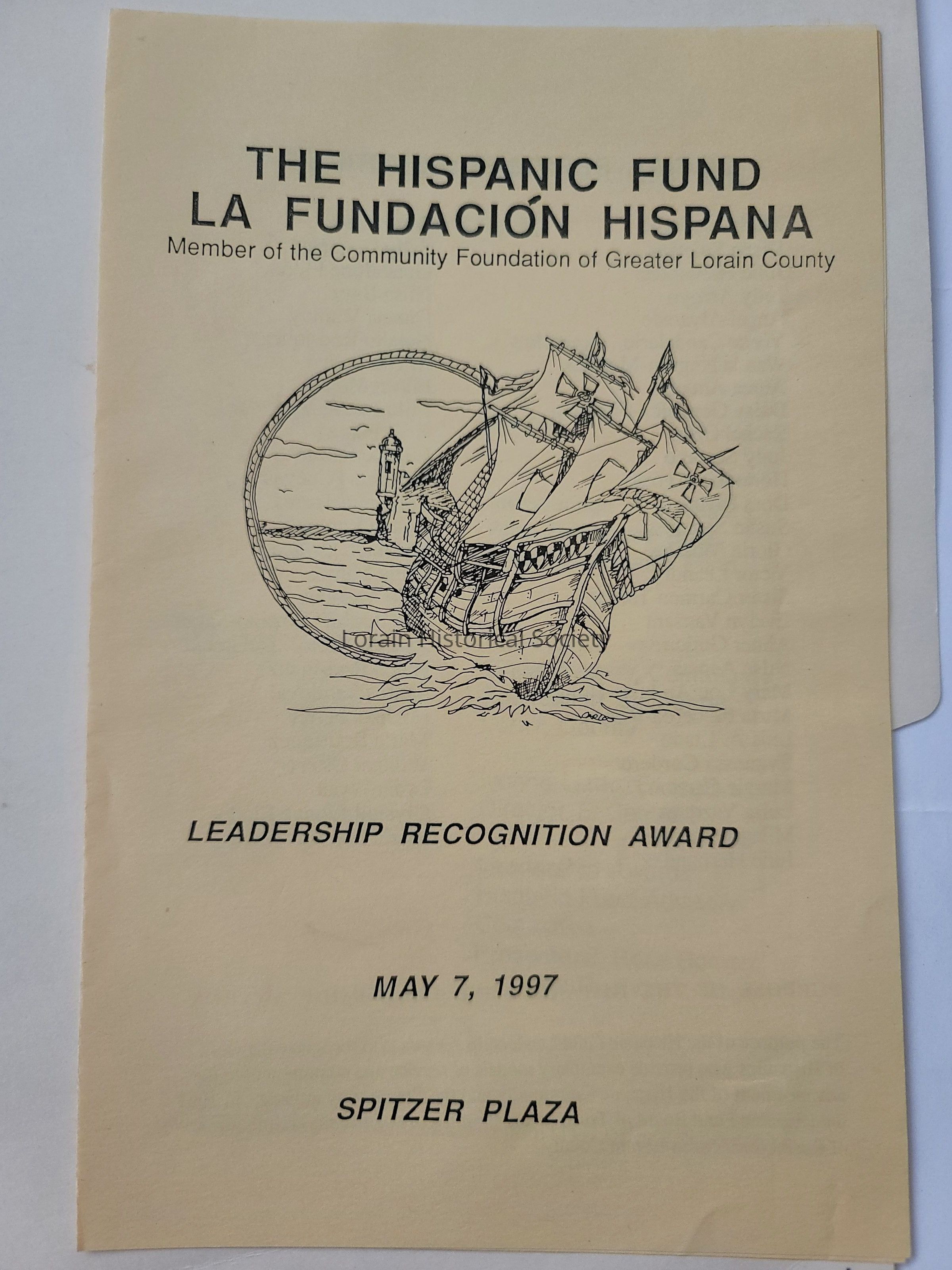 The Hispanic Fund La Fundación Hispana, Member of the Community Foundation of Lorain County, Leadership Recognition Award Program from May 7, 1997. Event held at Spitzer Plaza.Collection